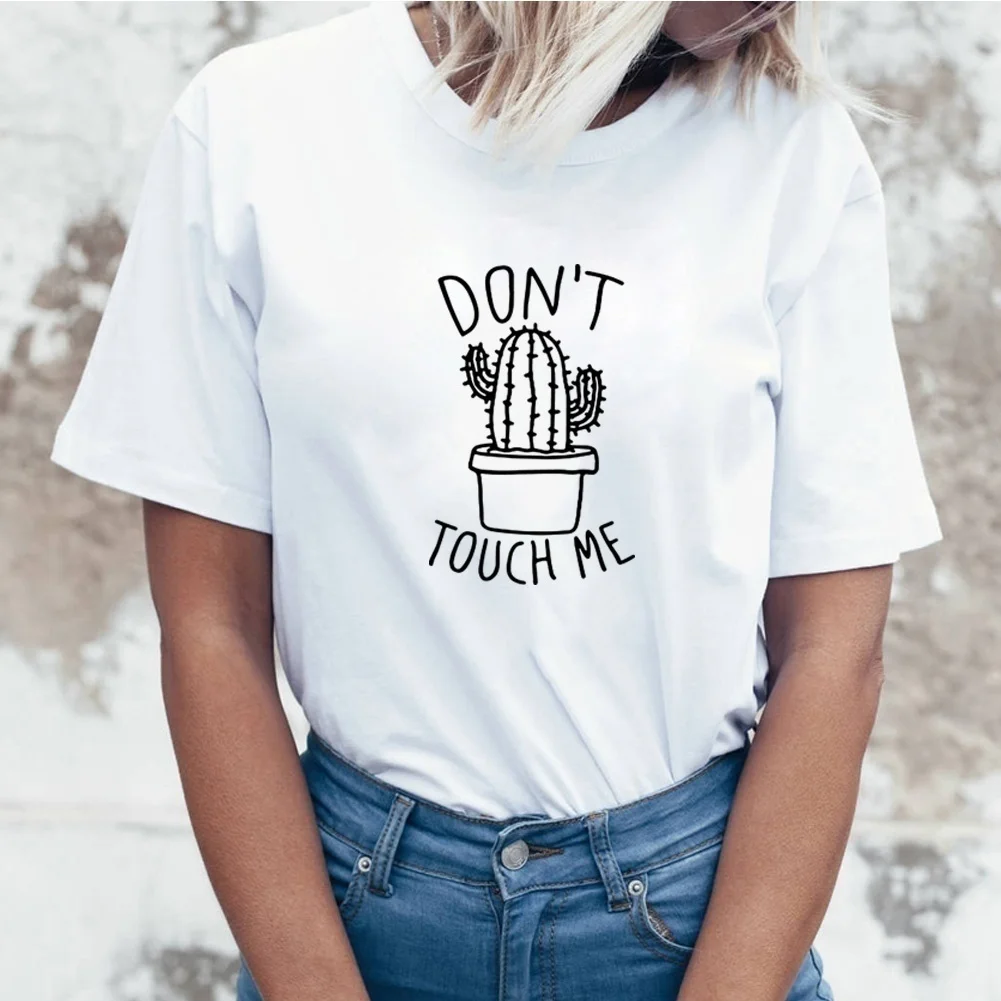 Милая футболка с рисунком кактуса, женская летняя забавная футболка с надписью Don't Touch Me, Женский хлопковый топ с коротким рукавом, Прямая поставка
