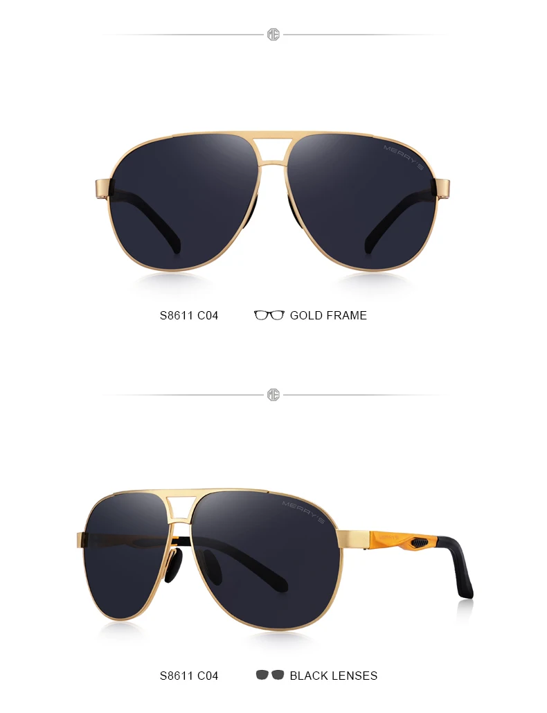 Мужские Солнцезащитные очки-авиаторы MERRYS, классические Поляризационные солнечные очки-авиаторы в большой оправе с алюминиевыми дужками, с защитой UV400, S8611N