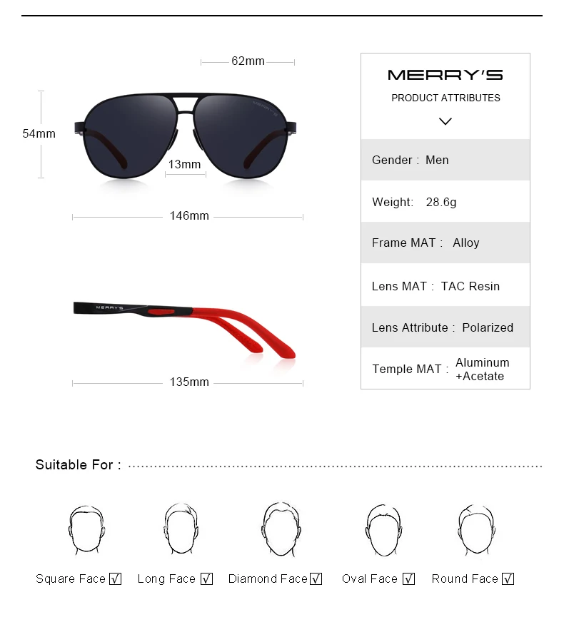 Мужские солнцезащитные очки MERRYS, дизайнерские классические очки ...