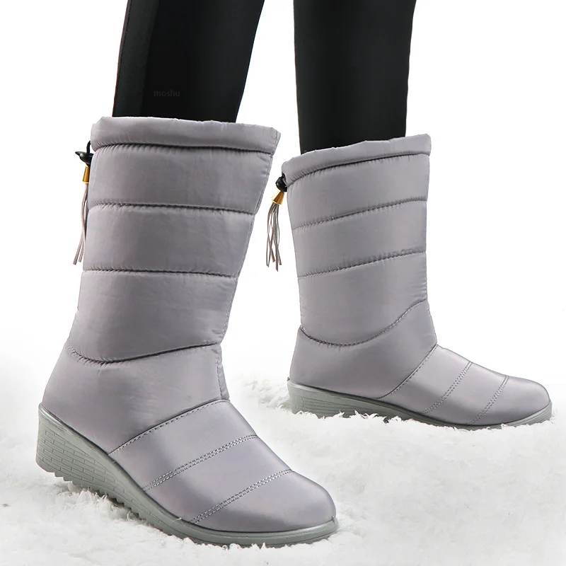 Женские ботинки до середины икры, пуховые ботинки, высокие водонепроницаемые женские зимние ботинки, женская плюшевая стелька, женская обувь 2021