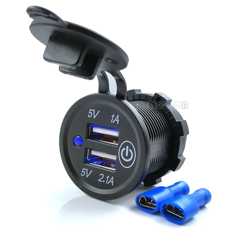 Зарядное устройство USB, 3,1 А, 12 В24 В, водонепроницаемое автомобильное зарядное устройство с переключателем для автомобиля, фургона, квадроцикла, лодки, мотоцикла, мобильного