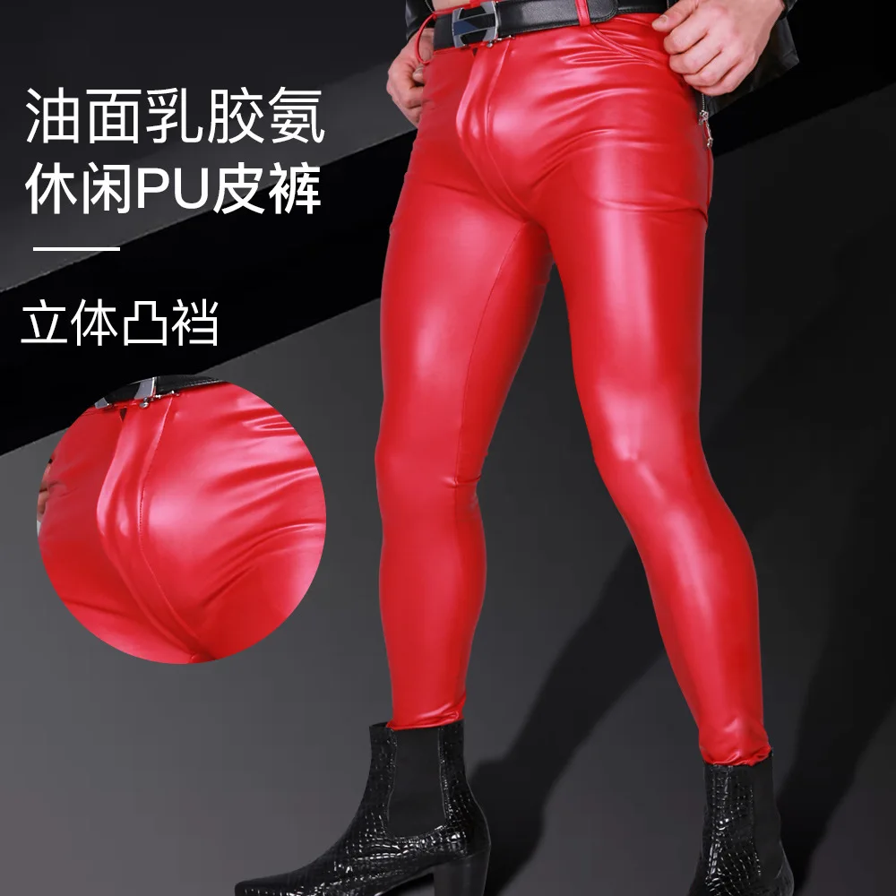 Стильные латексные мужские облегающие брюки-карандаш из искусственной кожи, мужские брюки, блестящая Клубная одежда для сцены, модные брюки 910, мужские брюки