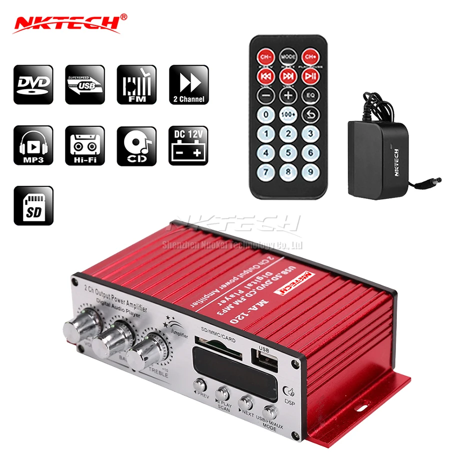 Цифровой автомобильный аудиоплеер NKTECH MA-120, усилитель мощности 2 х20 Вт, Hi-Fi стерео Бас SD USB CD DVD MP3 FM, предварительный усилитель домашнего аудио