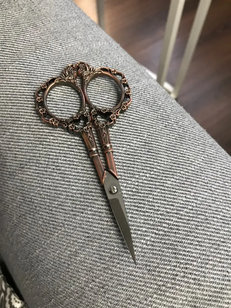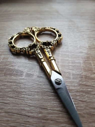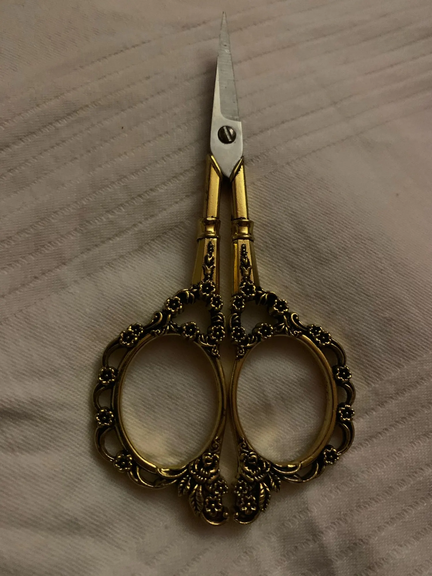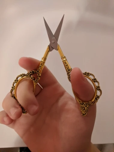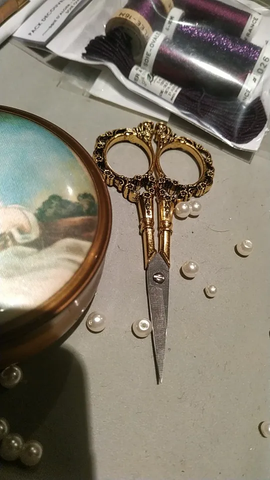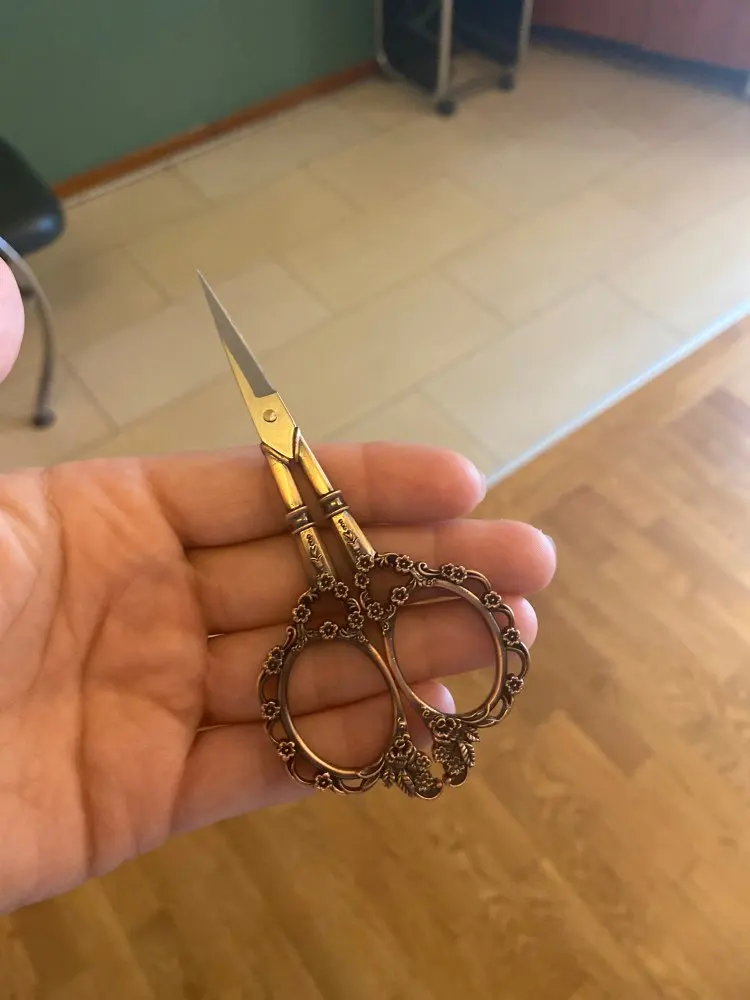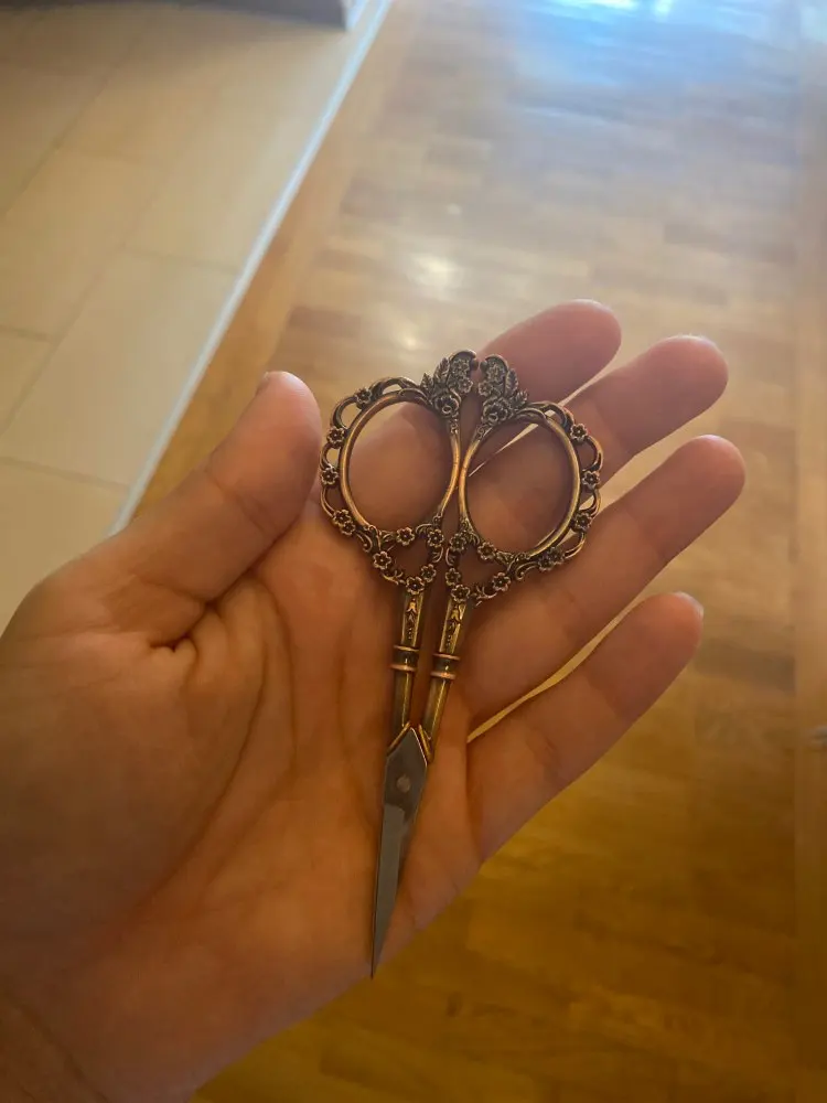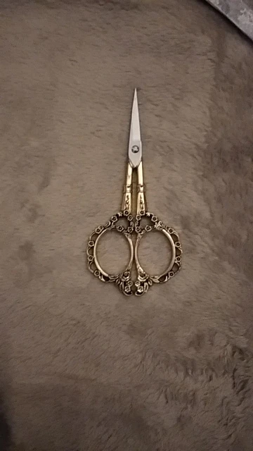 Я уронил его на пол, не желая его сажать в необходимый паркет! Очень милая заточка! Бесцветная очень красивая пара ножниц, сделанных в позолоченном покрытии, оставляет меня