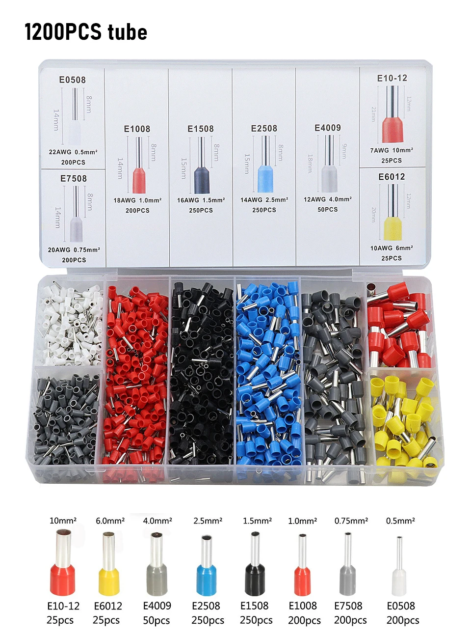 Трубчатый обжимной инструмент 0,25-10 мм2, саморегулирующиеся обжимные плоскогубцы с 1200 шт. обжимных клемм для проводов, ручной инструмент