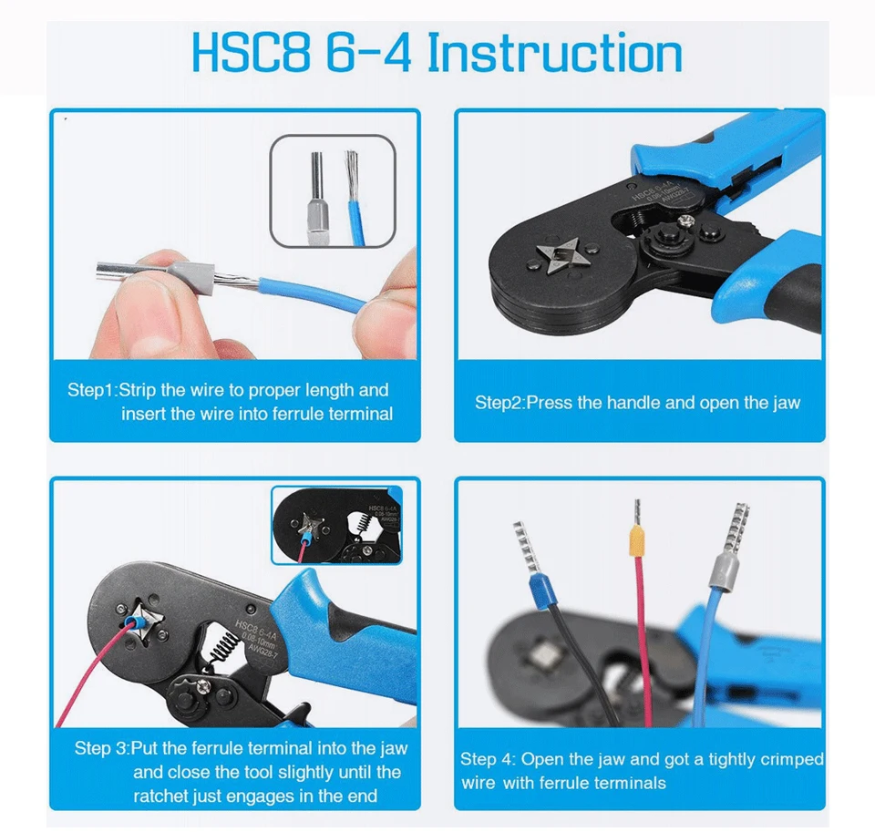 Отлично обжимает все клеммы из комплекта. качество исполнения тоже хорошее.