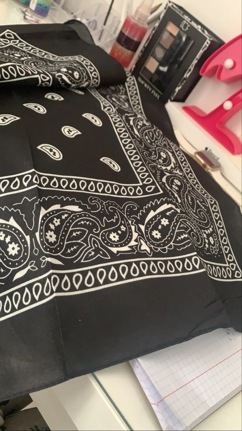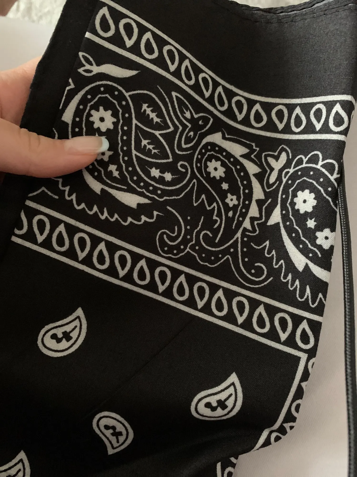 В Украину бандана пришла за 22 дня на Новую Почту. По сути своей она является большой тряпочкой. Но это даже не квадрат, так как края не ровные. В некоторых местах торчат нитки. Несмотря на это, бандана мне понравилась, из-за отзывов я ожидала чего-то хуже. Ткань не самая лучшая, но и плохой ее назвать тоже нельзя. Могу ли я посоветовать этот товар? Думаю, это стоит решать самому, но, как по мне, лучше найти что-то с лучшим качеством.