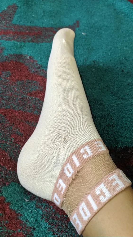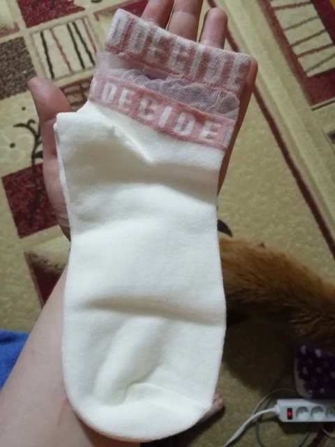 Хорошие носочки,интересный дизайн , но цвет отличается, пришли не белые, а бежевые, но все равно красиво смотрится