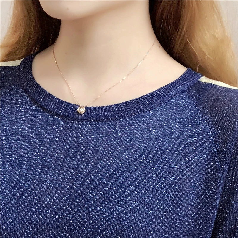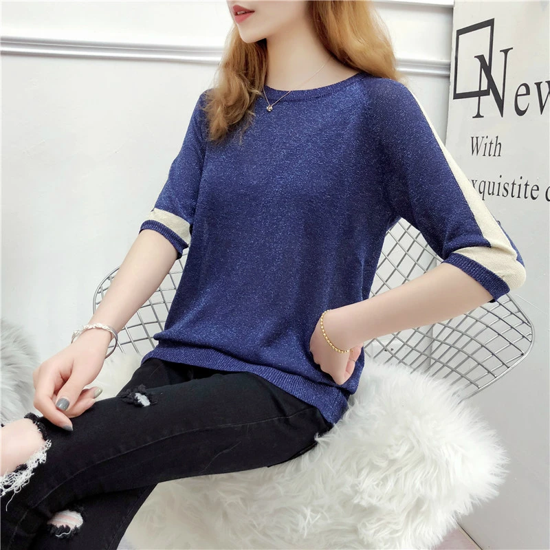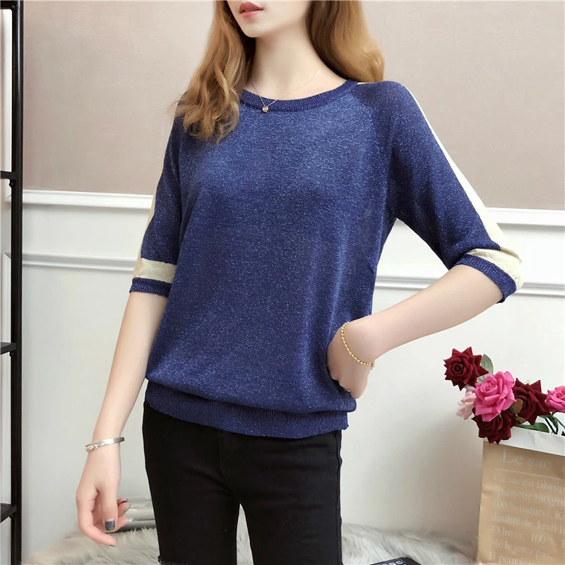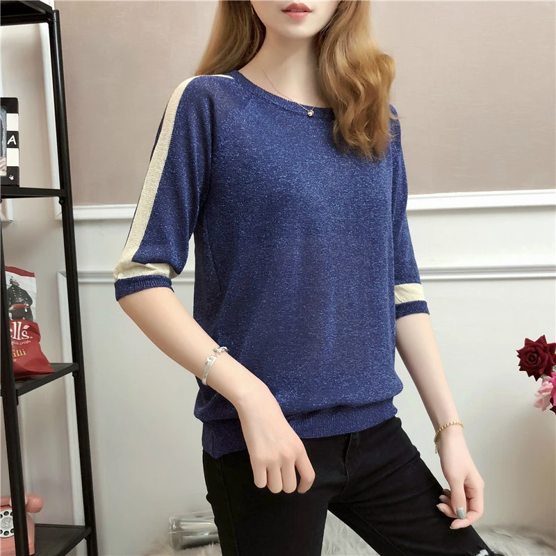 Новинка 2019, женская одежда, мигающая шелковая рубашка, Женская свободная модная повседневная тонкая футболка с рукавами семь точек