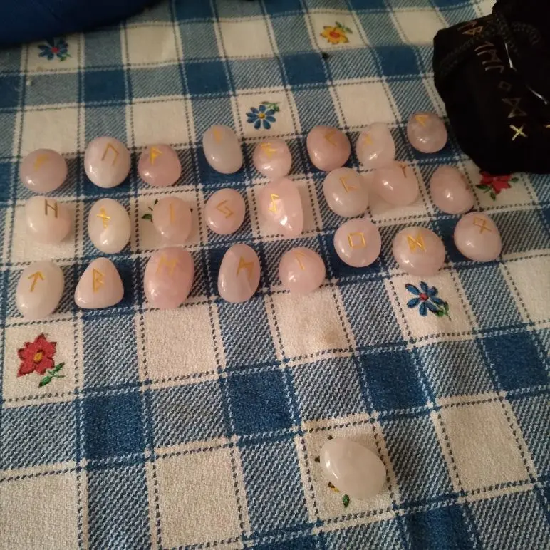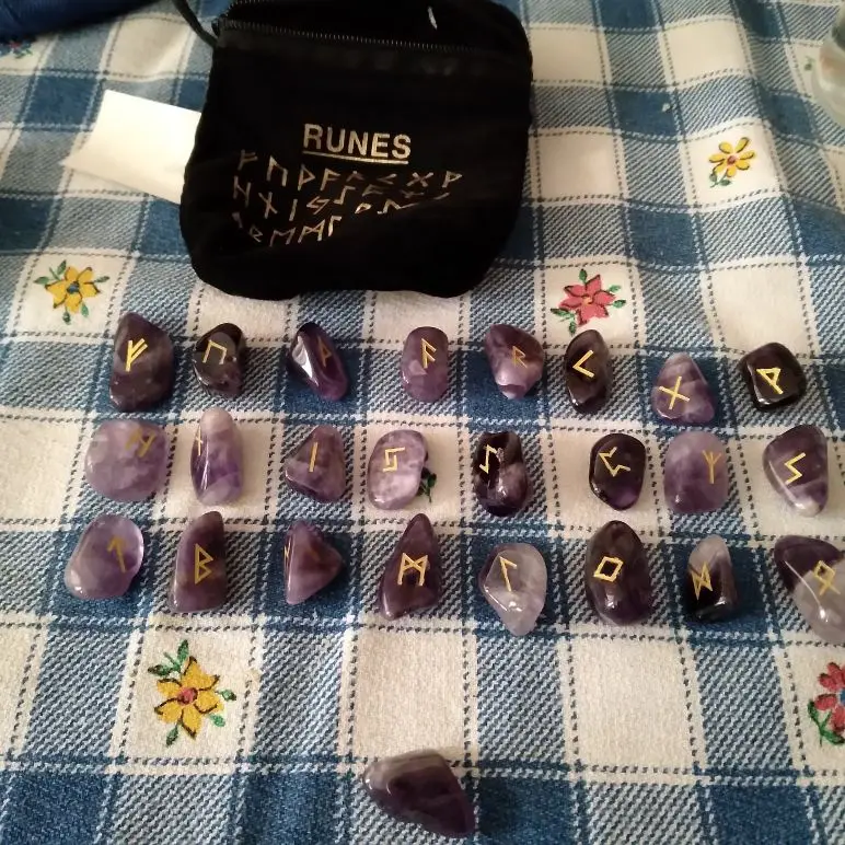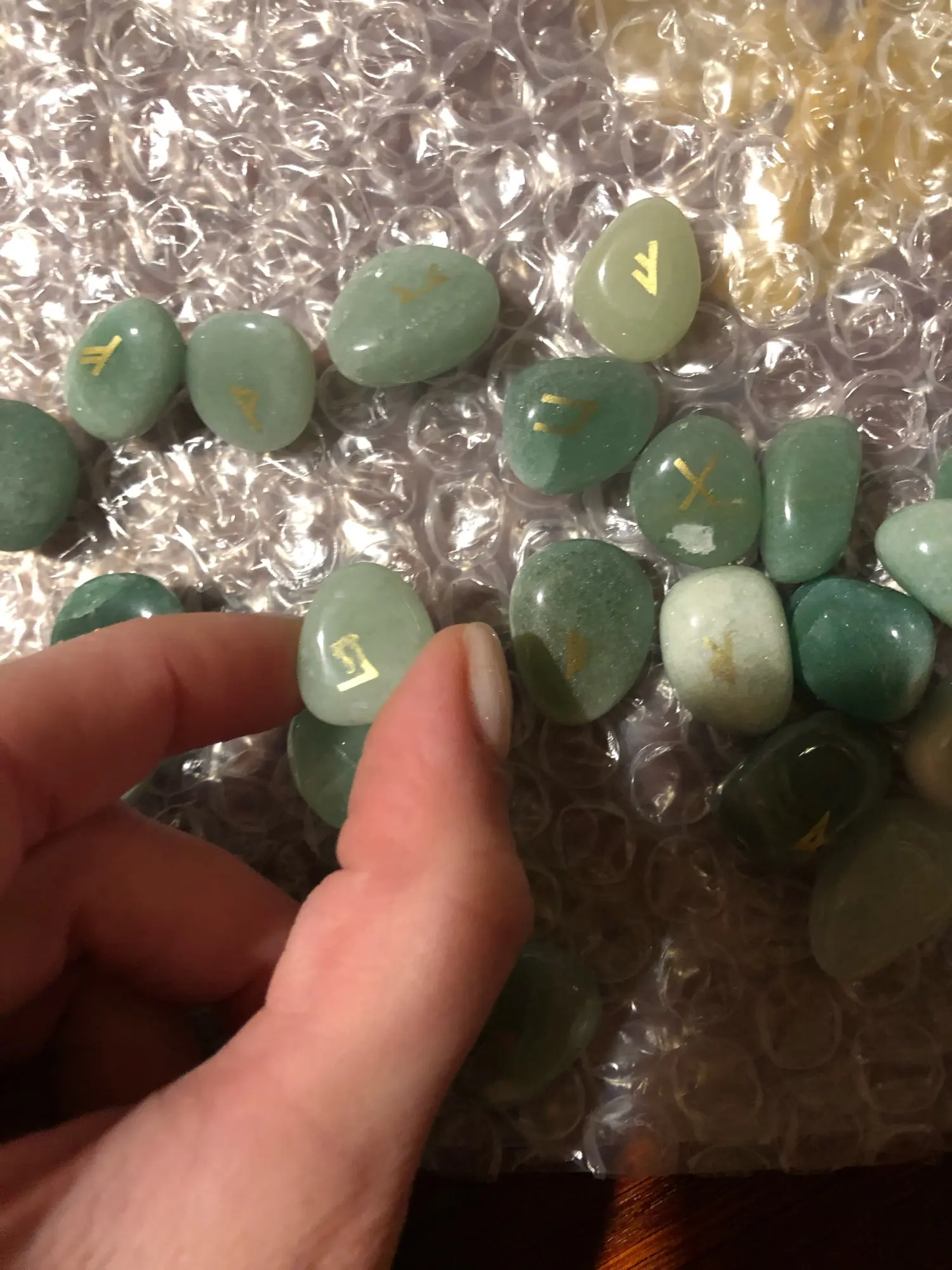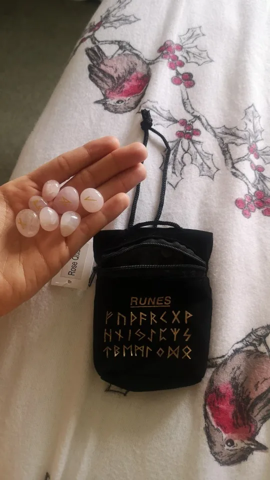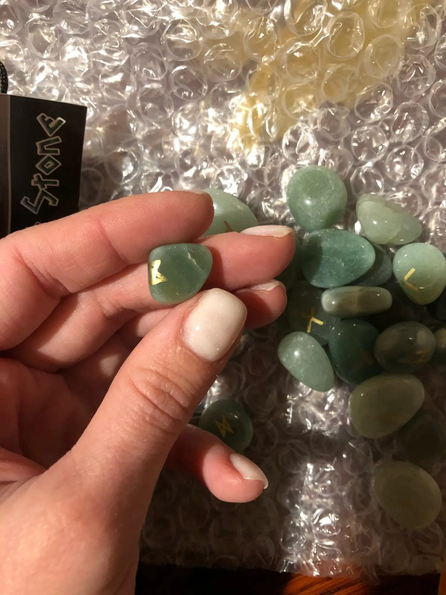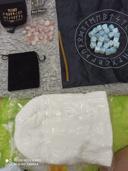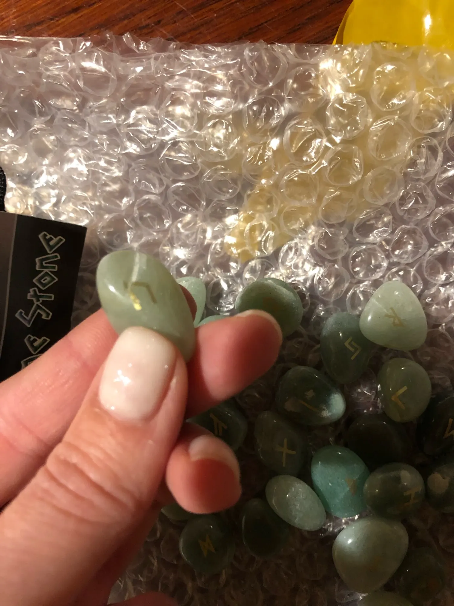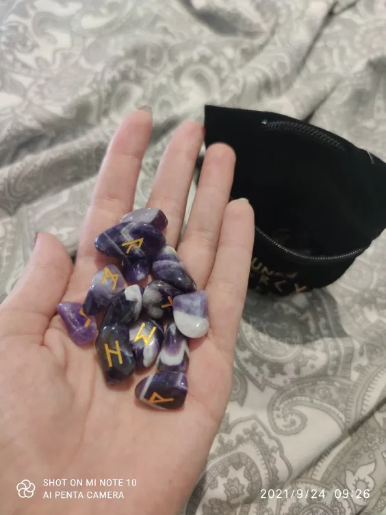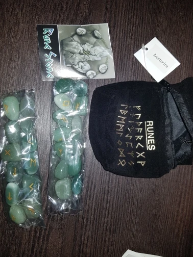 Упаковано идеально. Камни натуральные, красивые, правда не круглые как на фото, а разной произвольной формы. Не очень понравилось как выкрашены сами руны. Одна руна испачкана немного в золотистой краске, а пара других просто неаккуратно покрашены. Все остальное - супер.