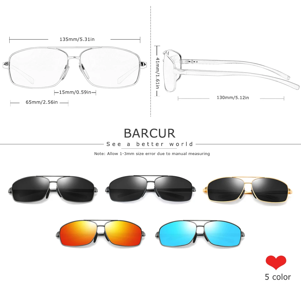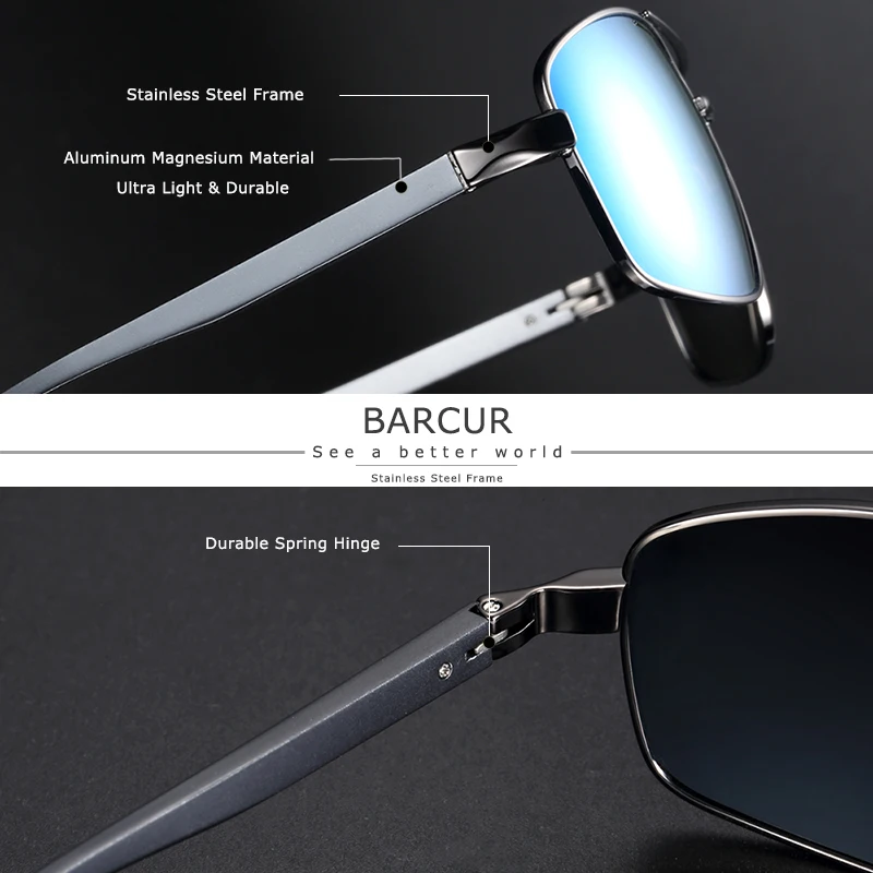 Мужские солнцезащитные очки BARCUR, винтажные дизайнерские Квадратные Классические солнцезащитные очки в стиле ретро, с поляризацией, UV400