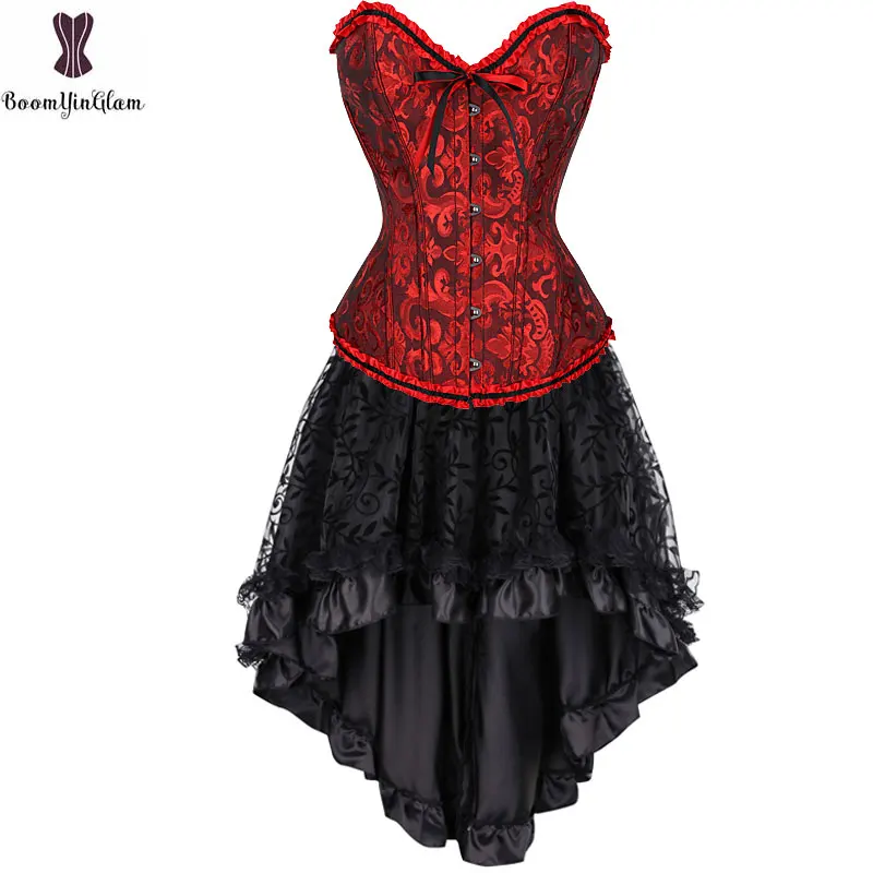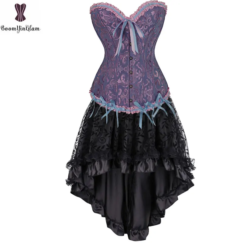 Корсет, платье, костюм, бюстье, топ и юбка в стиле ретро, винтажный костюм для косплея, борлеск, женский костюм в стиле стимпанк, комплект Gorset, сексуальная клубная одежда