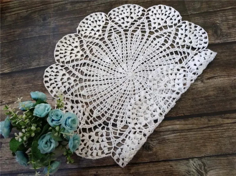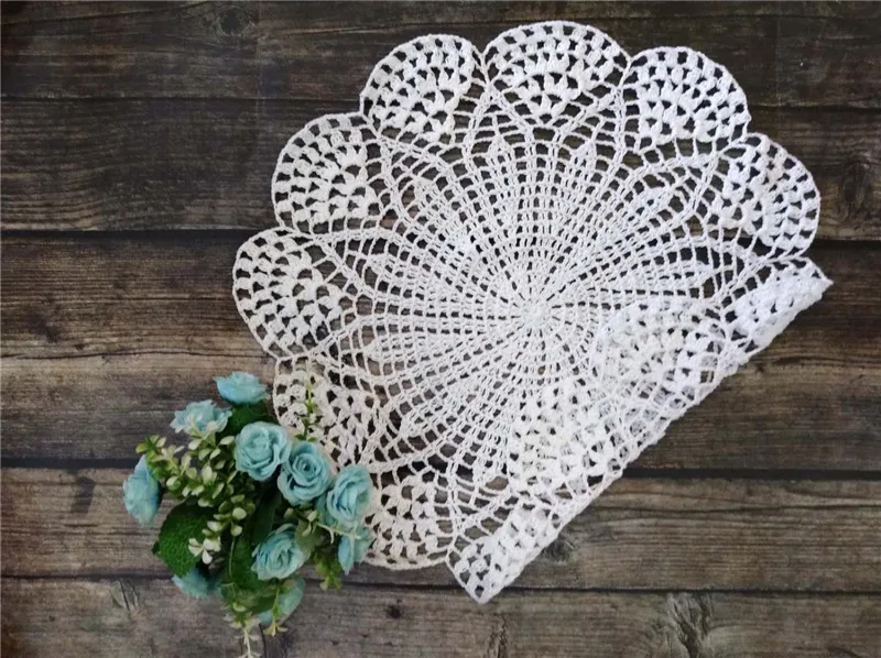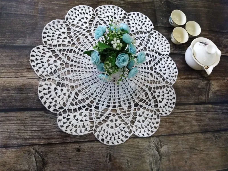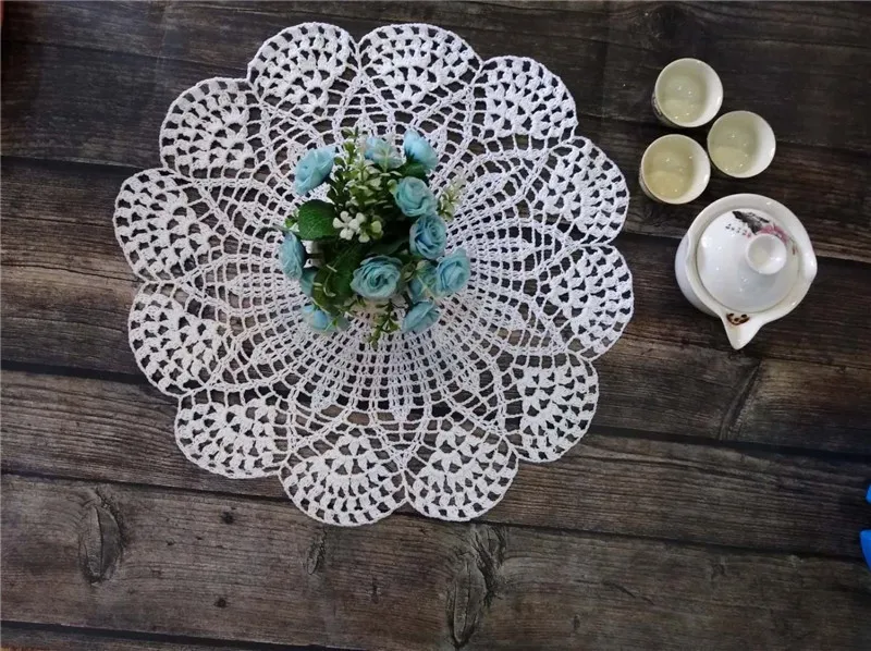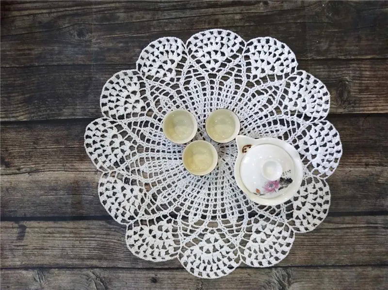 Круглый Роскошный хлопковый коврик для стола 39 см, тканевый кружевной крючком Рождественская салфетка под приборы, подставка под кухонную посуду для свадьбы, подставка под посуду