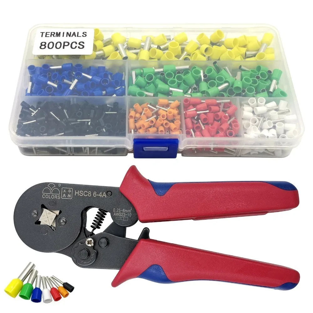 800 шт. кабельный провод, коннектор с ручным обжимным наконечником, щипцы, обжимной инструмент HSC8 6-4A, набор AWG 10-23