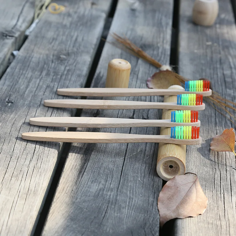 3 шт. цветная бамбуковая зубная щетка Оптовая Продажа Экологичная деревянная Радужная бамбуковая зубная щетка уход за полостью рта мягкая щетина