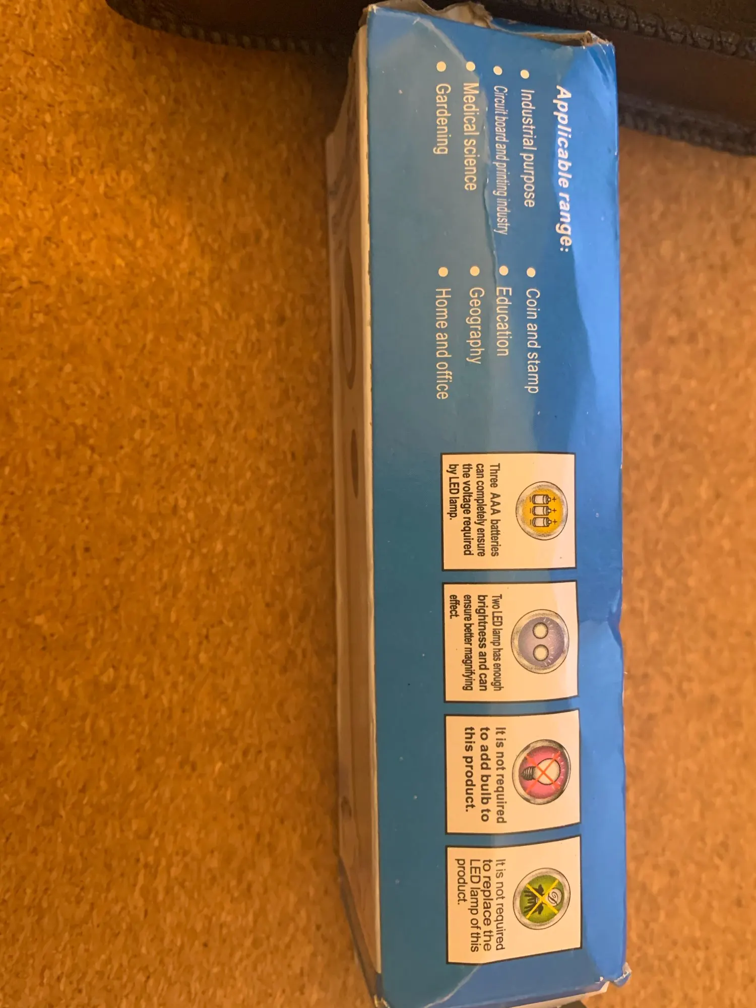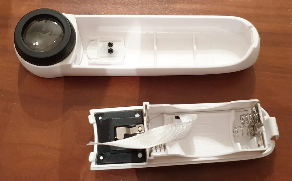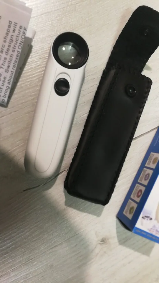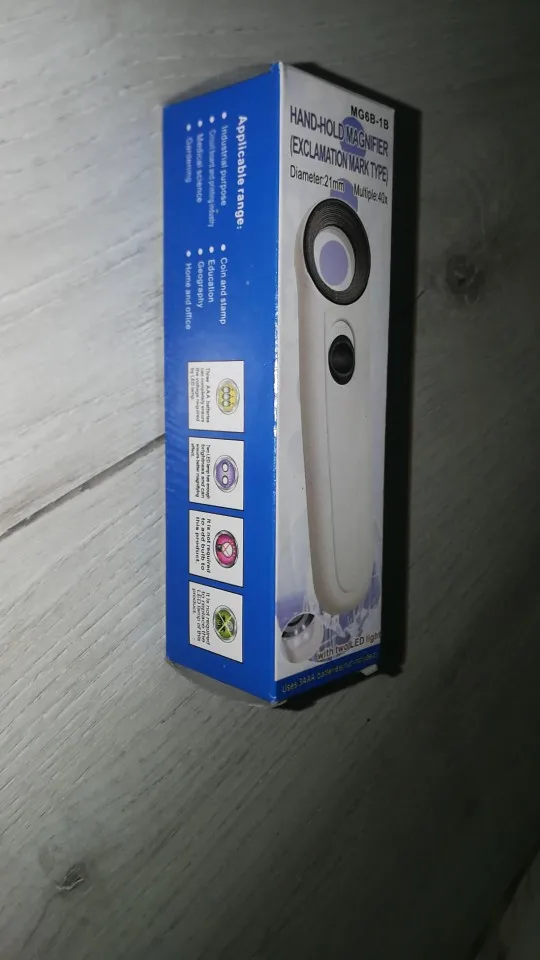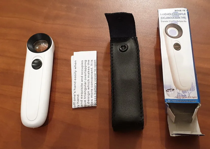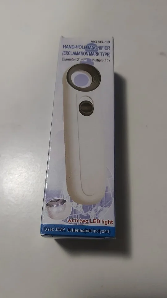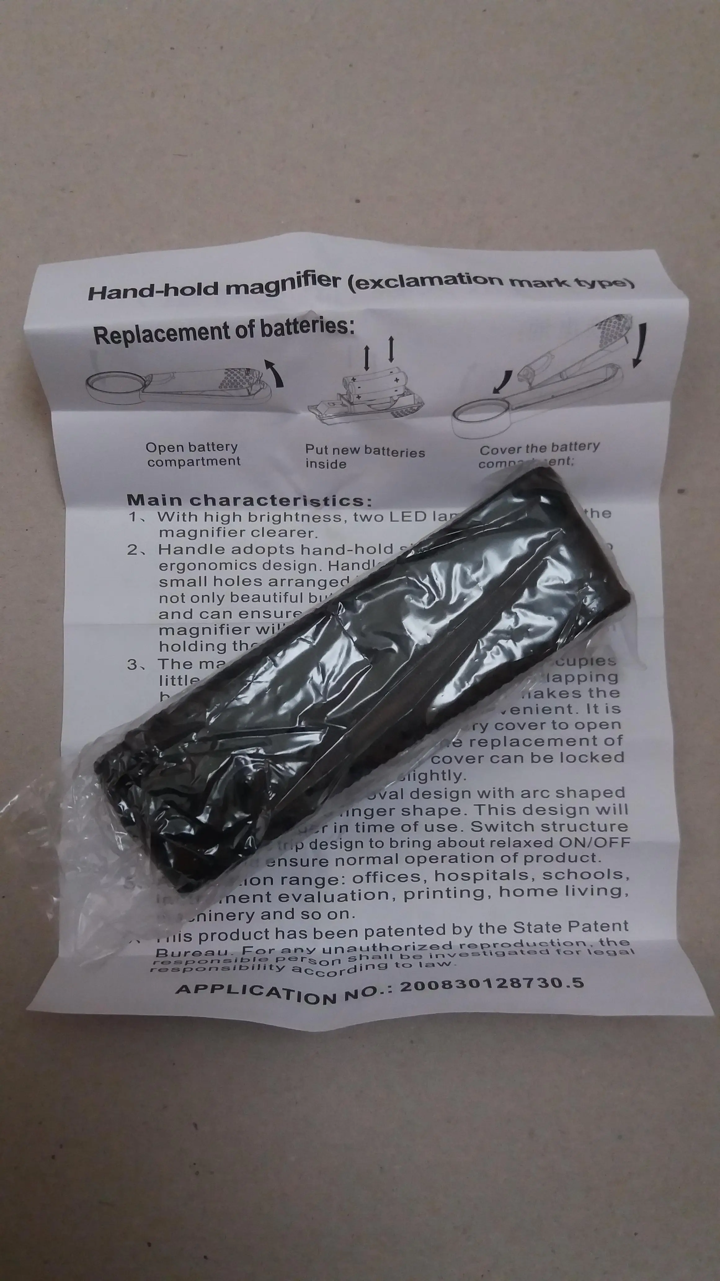 Быстрая доставка. Увеличение является правильным, но линзы пластиковые, поэтому вы должны быть очень осторожны при их очистке. Светодиоды нуждаются в трех батареях AAA (не входят в комплект).