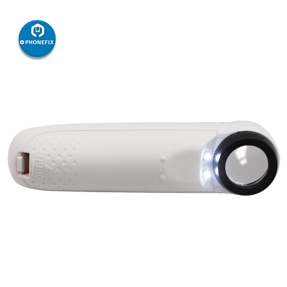 Ручное увеличительное стекло 45X HD со светодиодной подсветкой, 40 раз, печатная плата, инструменты для ремонта, мини-микроскоп, увеличительное стекло, лупа для ювелирных изделий