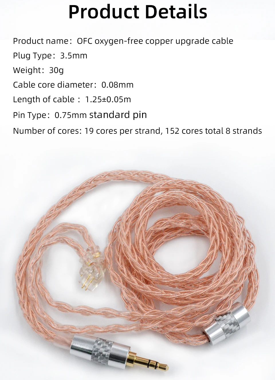 Кабель KZ 8-жильный бескислородный медный кабель для обновления наушников для KZ CCA TRN гарнитуры ZAX ASX VX CA16 ZAS NRA CSN EXDPRO