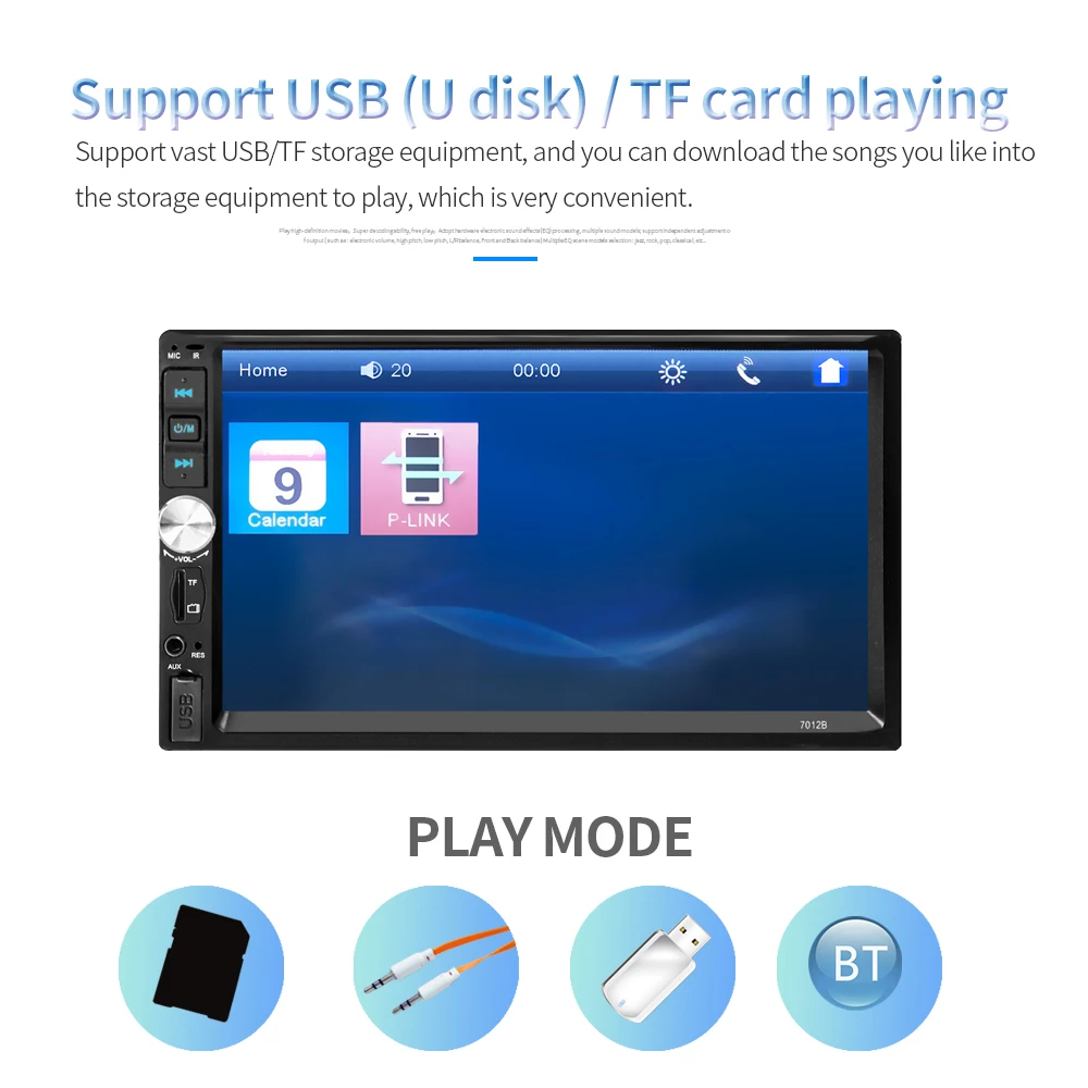 Автомобильный радиоприемник 2 din, 7-дюймовый HD Авторадио, мультимедийный плеер 2DIN, сенсорный экран, автоматическое аудио, стерео, MP5, Bluetooth, USB, TF, FM, камера 7012B