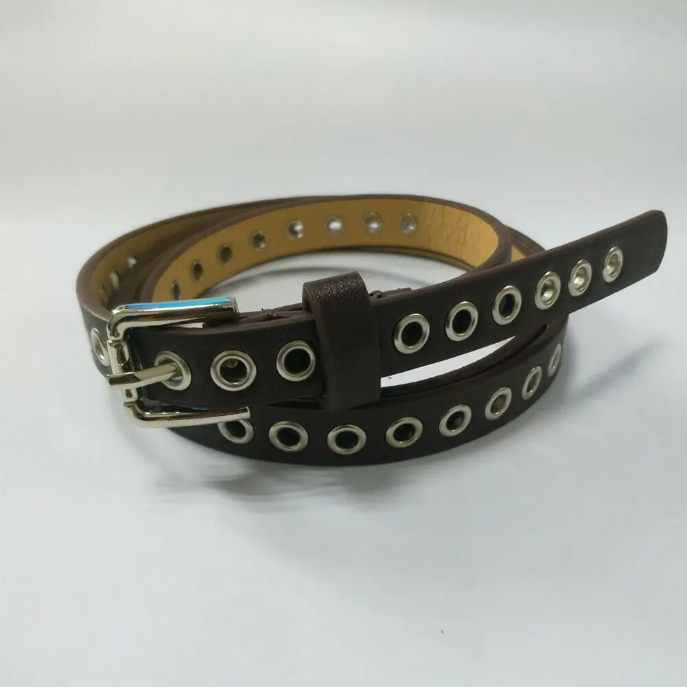 Ремень унисекс из ПУ кожи, Модный повседневный пояс с заклепками, с одним люверсом и отверстиями, для мужчин и женщин