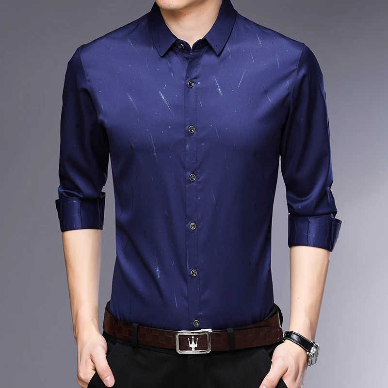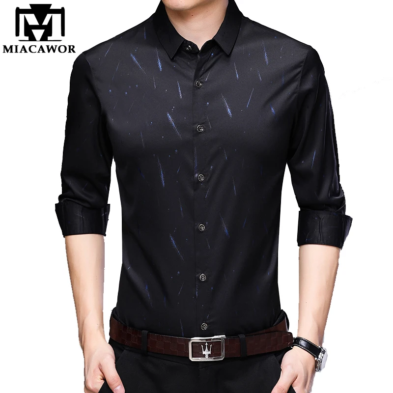 Повседневная мужская рубашка MIACAWOR, облегающая Мужская рубашка с длинным рукавом, Мужская Осенняя рубашка, Мужская одежда, рабочая одежда 4XL C529