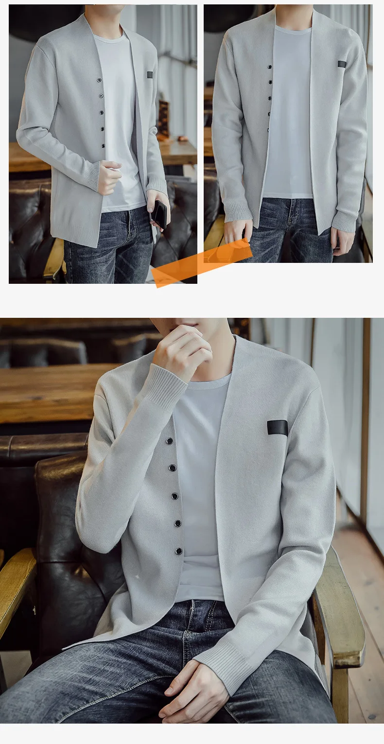Новинка, модный вязаный кардиган на весну и осень, мужская повседне...
