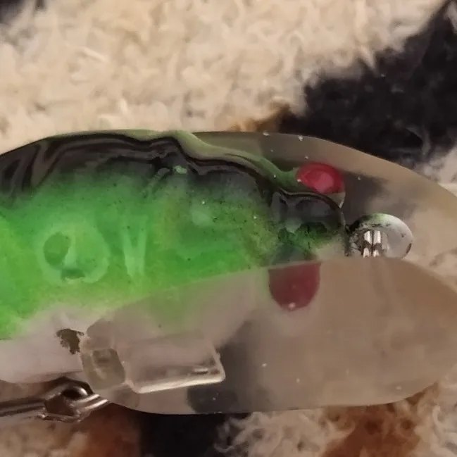 Покрашен неплохо.Тройники острые петли проклеины.Но сама приманка не работает ,крутится как вертушка попробую крылья сделать побольше.Если небудет работать как кроулер тогда приделаю лопатку и будет кренк.