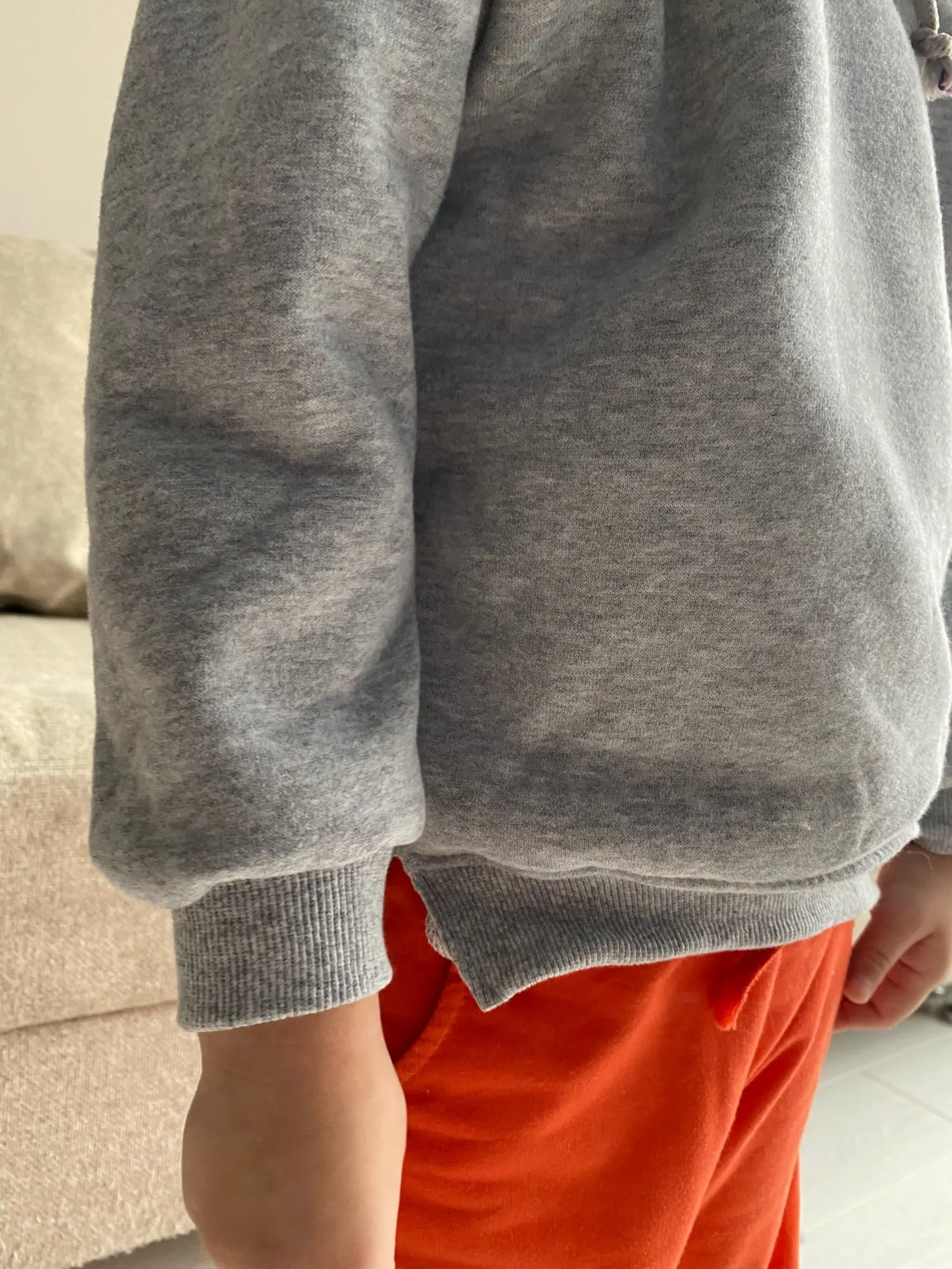 Худи детский. Милый худи, ткань очень приятная, хлопок с начесом. Капюшон из двойного материала. Красивый цвет, замечательные ушки. НО он жутко маломерит. На ребёнка примерно 110 см ростом и 17 кг весом размер 5Т очень мал, рукава короткие, капюшон в надетом состоянии тянет в плечах. Качество пошива нормальное