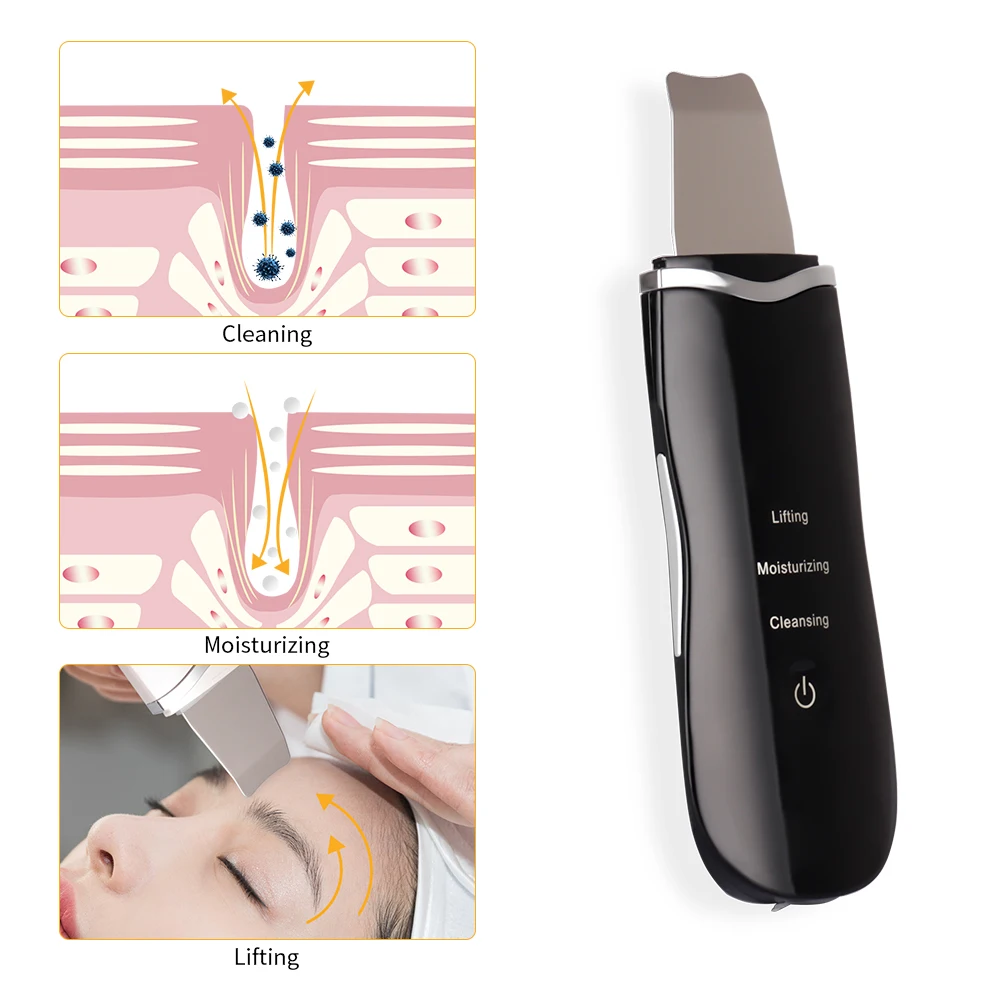 Ультразвуковое очищение кожи, очищение пор, глубокое очищение лица, отшелушивающий шпатель, удаление омертвевшей кожи