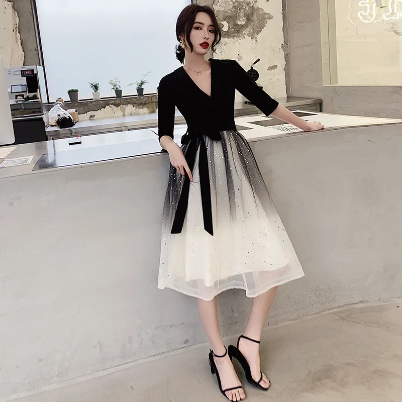 Черное женское платье с треугольным вырезом, вечернее Ципао, элегантные длинные платья до колена в стиле ретро, XS-XXXL