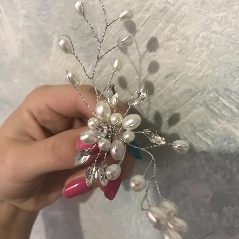 Заколка для невесты с кристаллами и жемчугом, серебристого цвета