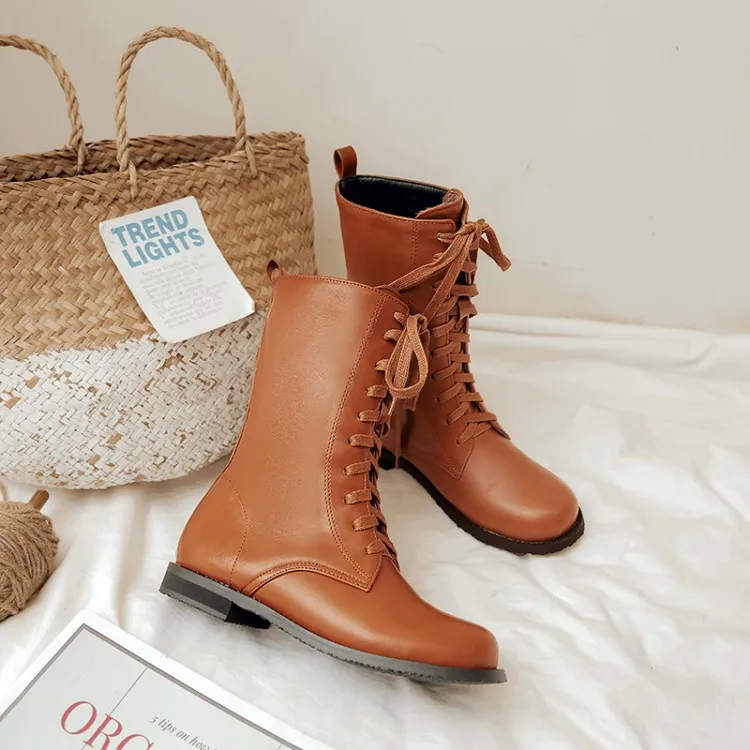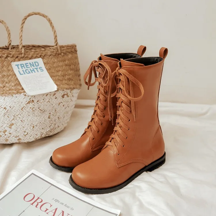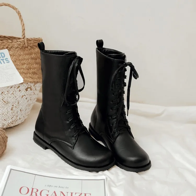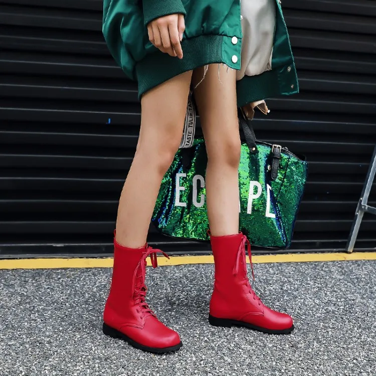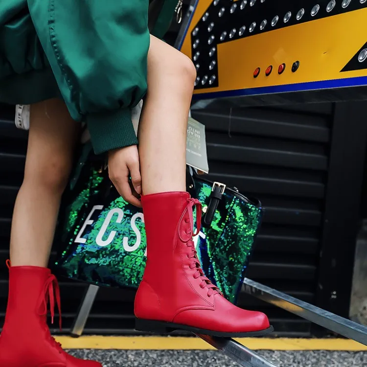 Большие размеры 11, 12, 13, 14, 15, 16, женские ботинки до середины голени на плоской подошве со шнуровкой модные повседневные теплые флисовые Ботинки Martin