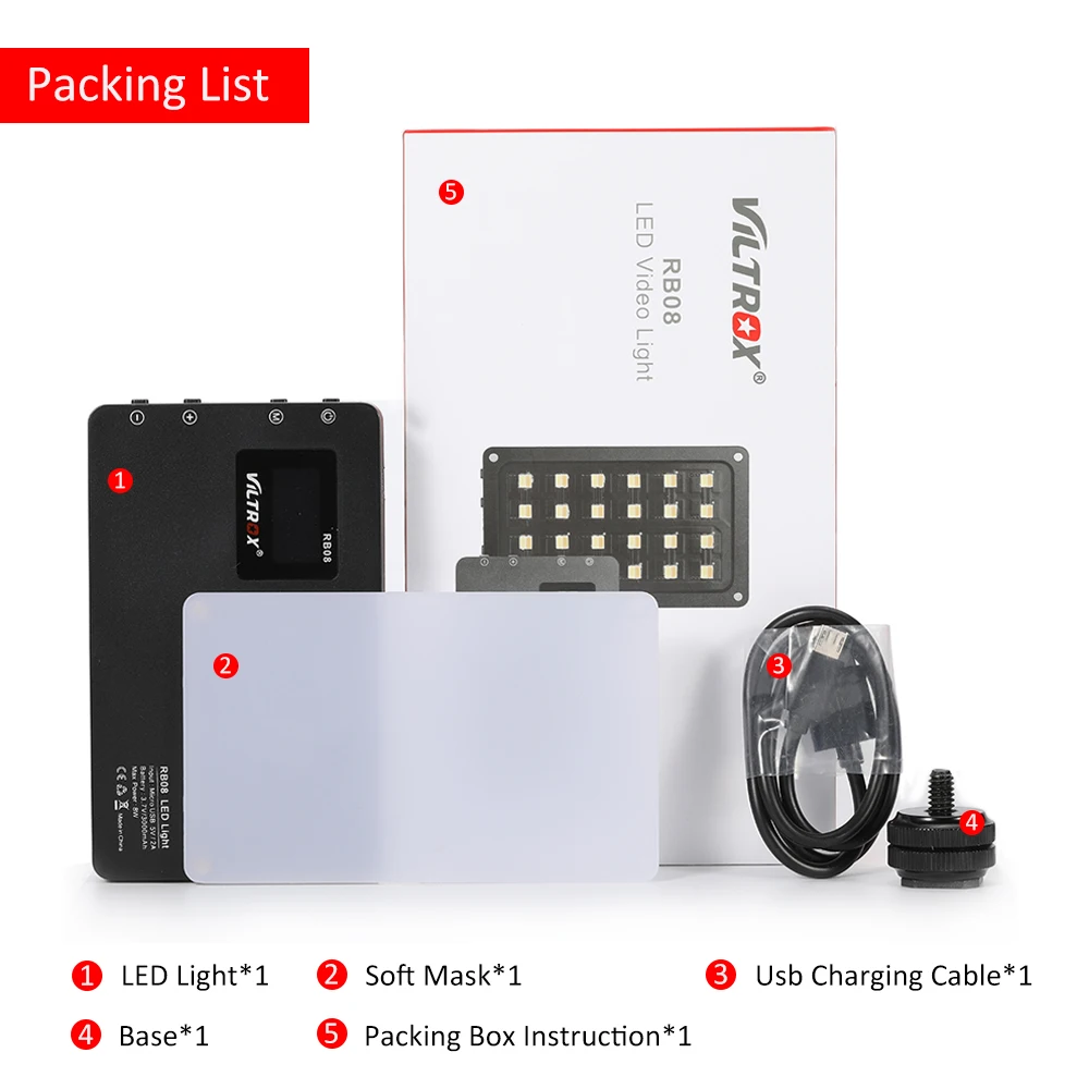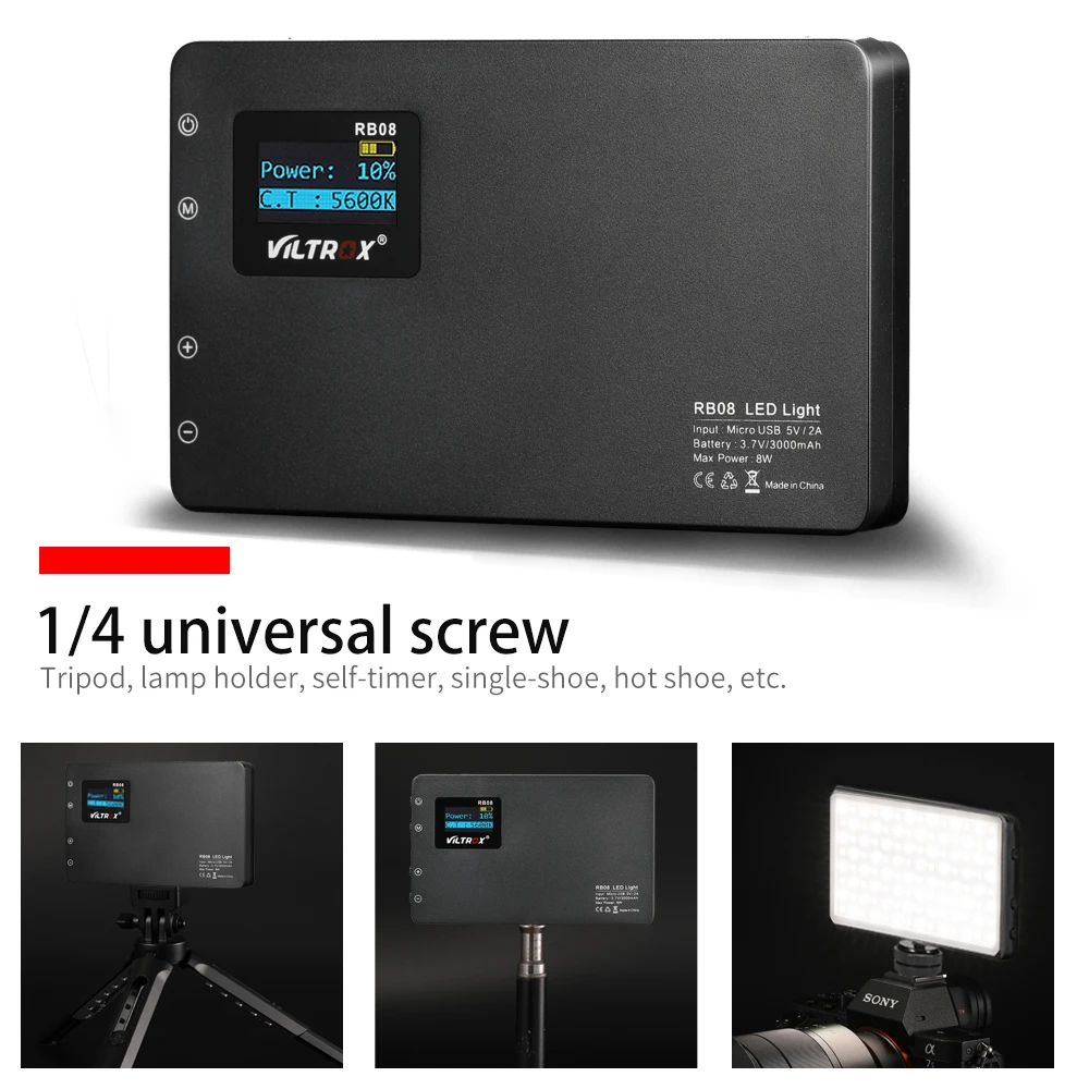Светодиодная мини-лампа Viltrox RB08, двухцветная, 2500-8500K, со встроенным аккумулятором для телефона, камеры, YouTube