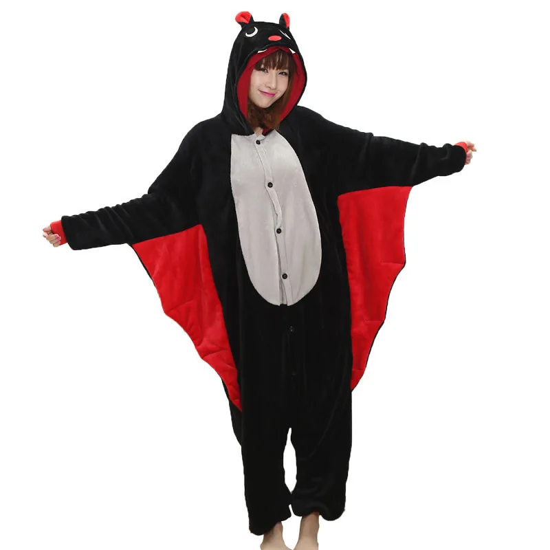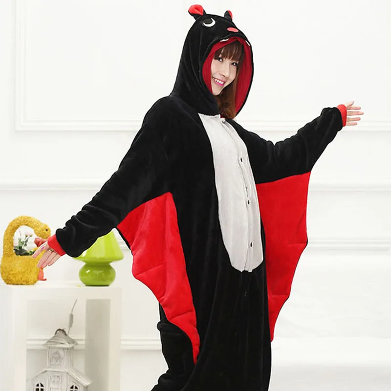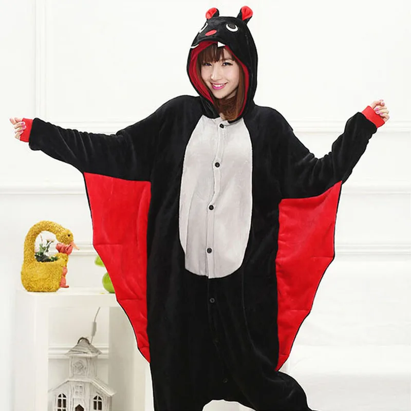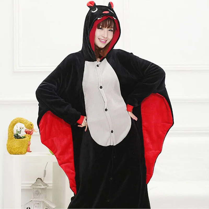 Женские Kigurumis, комбинезон в виде животных Пижама летучая мышь забавные черный костюм для взрослых вечерние комбинезон унисекс с рисунками героев из мультфильмов; Зимний теплый комбинезон для сна пара нарядное