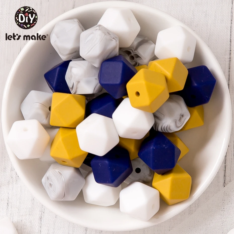 Бусины-прорезыватели для зубов, шестигранные, из силикона, 14 мм, 2...