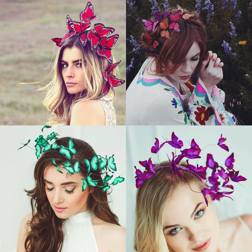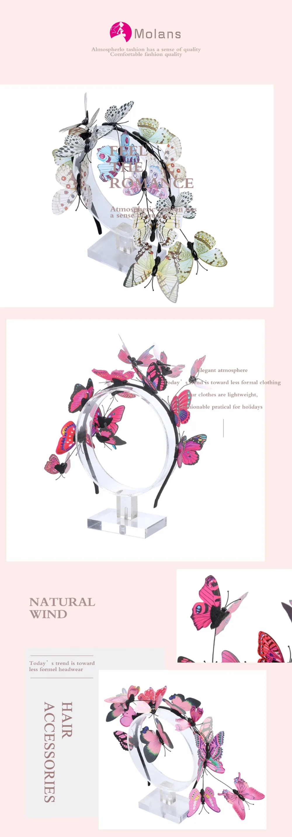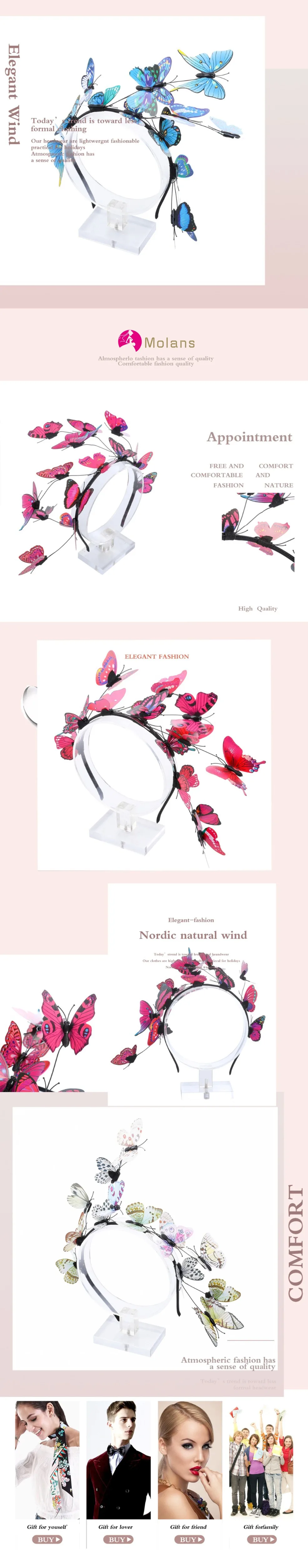 Обруч для волос Molans, однотонный, волшебный, разноцветный, повязки на голову с бабочками, с бабочками, для фотосессии в лесу