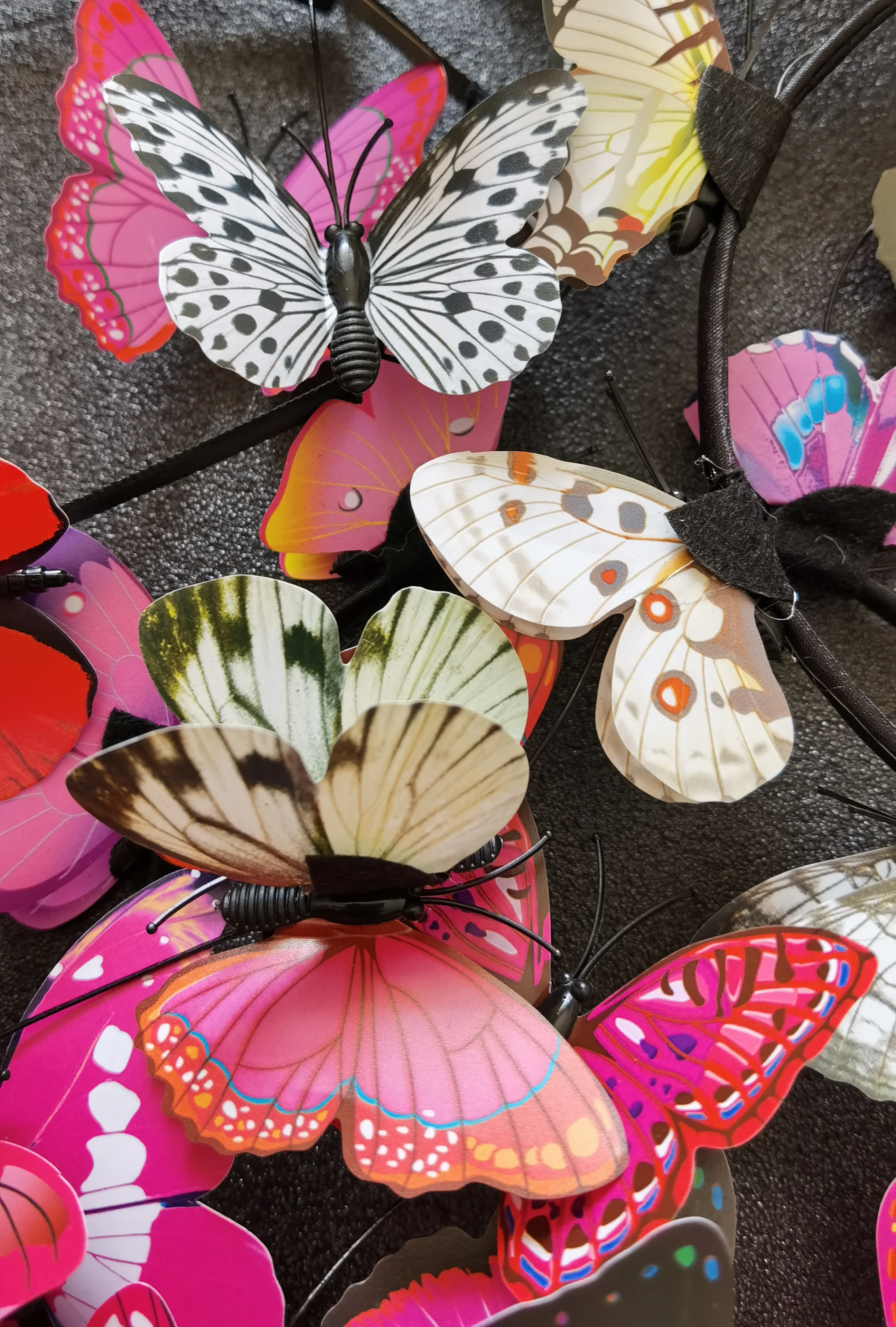 Обруч пришёл хорошо упакованный, ни одна бабочка не помялась, бабочки яркие, можно расправлять им крылышки, но они картонные. Рекомендую