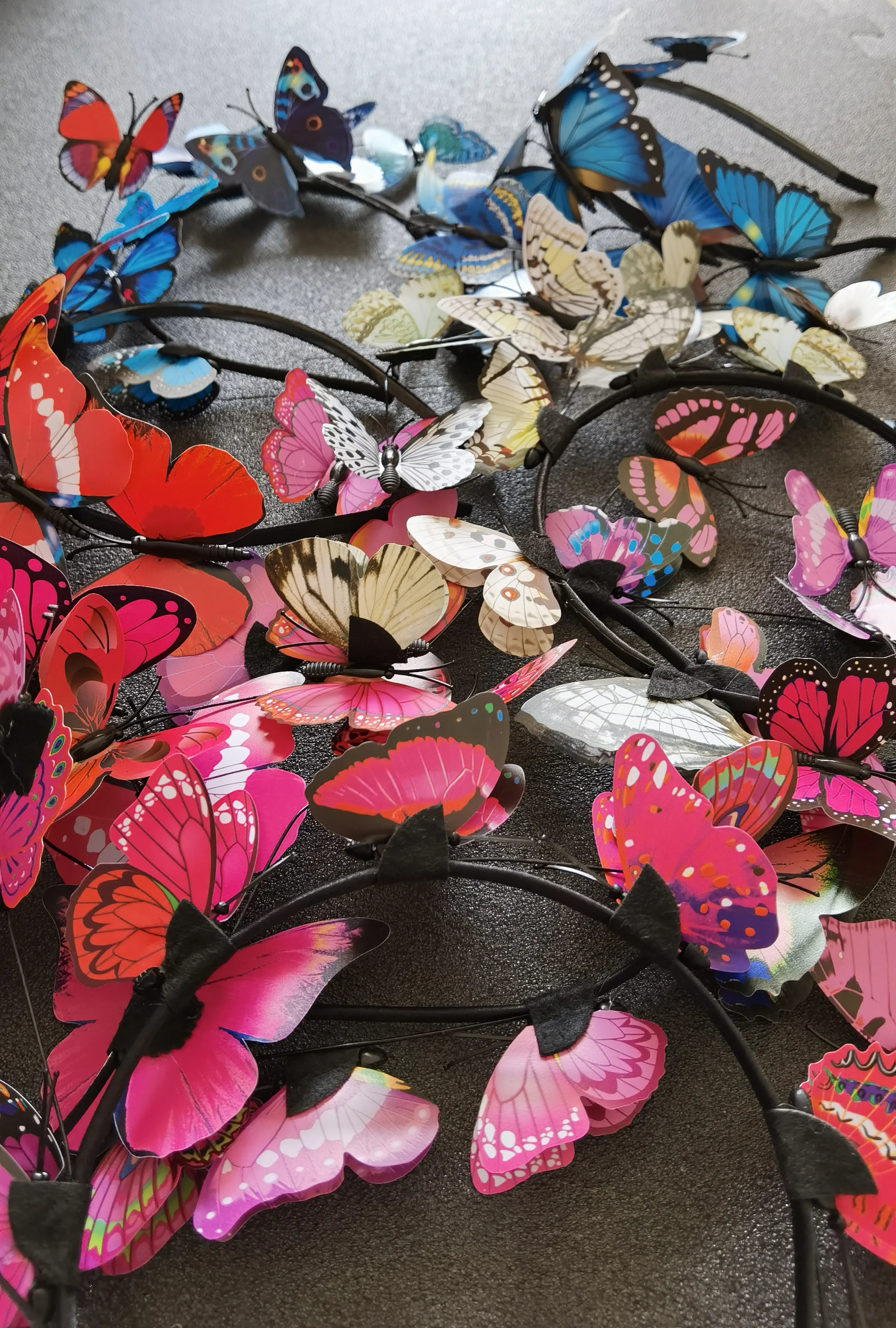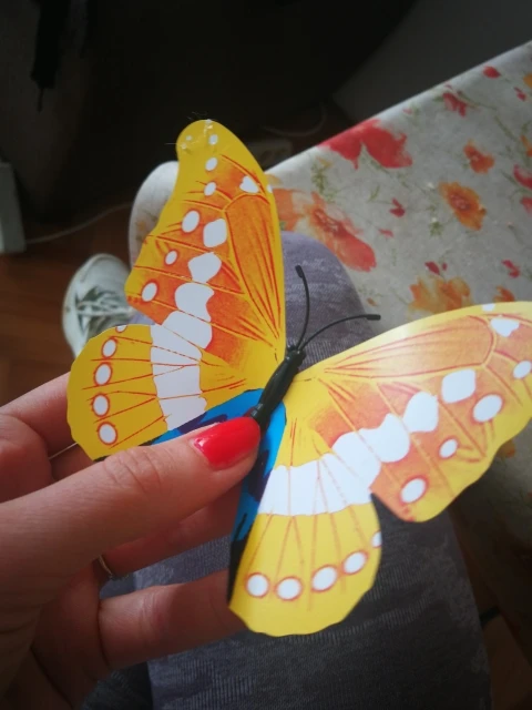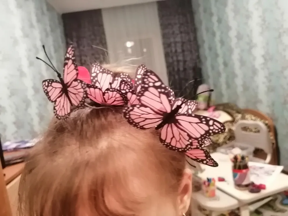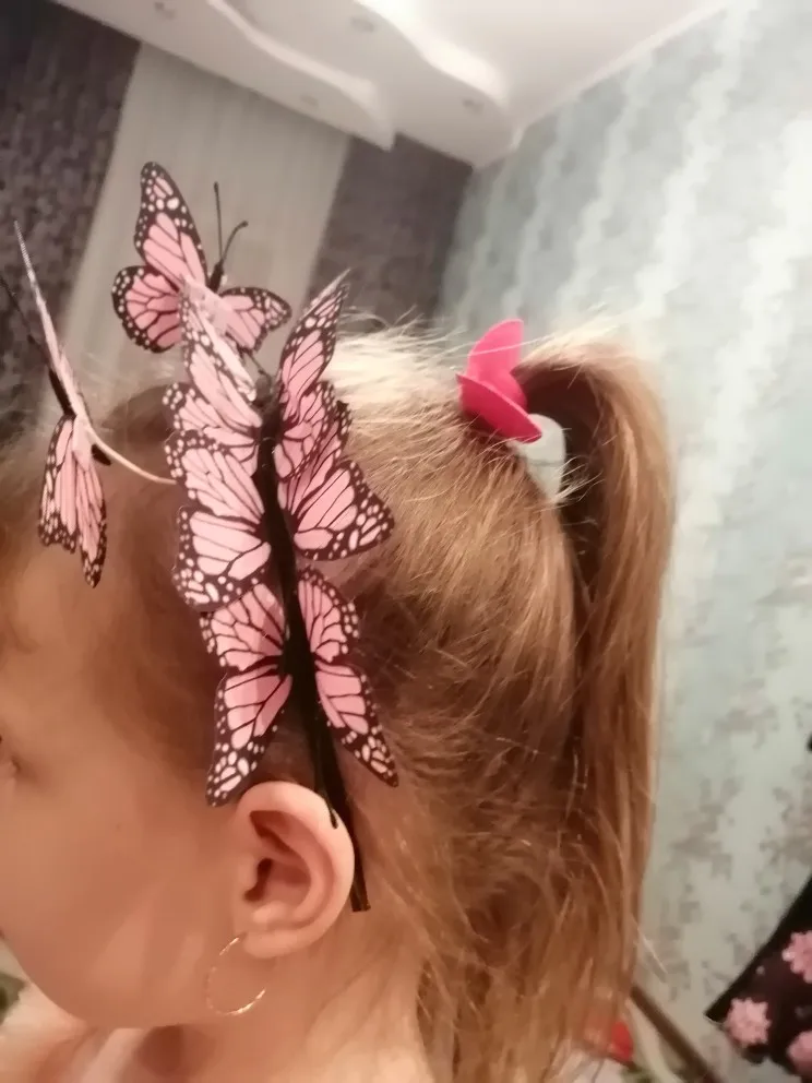 цвет ярче, чем на фото, обруч мягкий, единственное разочарование бабочки из картона