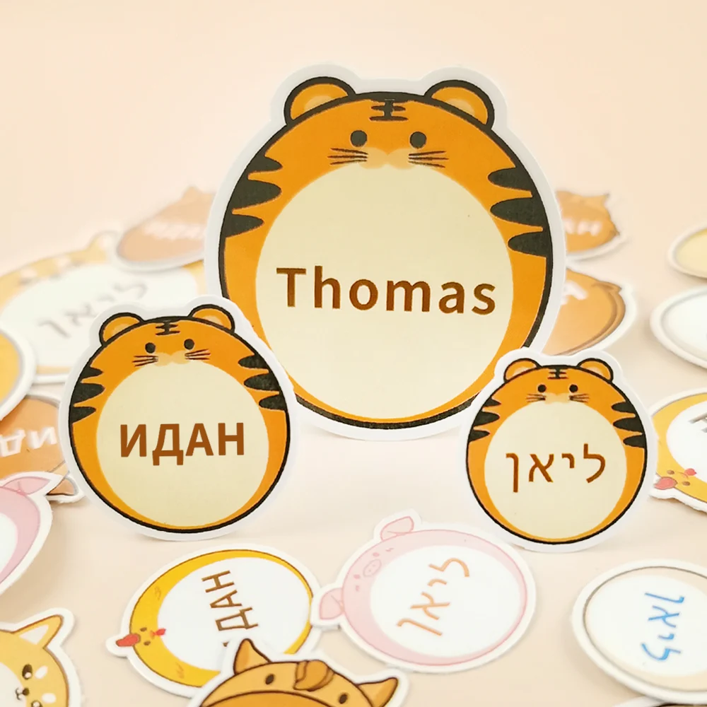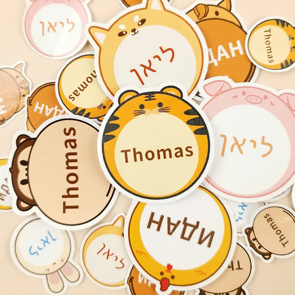 Набор водонепроницаемых этикеток для детей, наклейки на иврит, персональные с животными, скрапбукинг, школьные Канцтовары