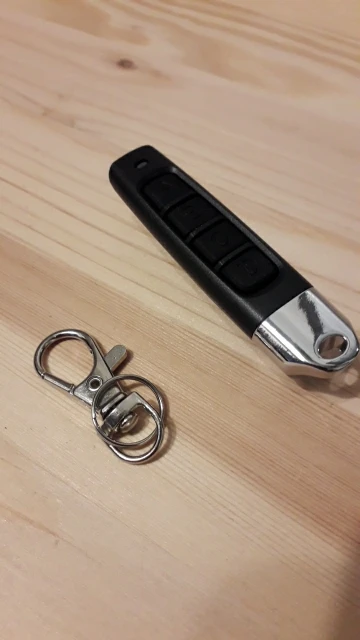 Привязал без проблем. Очень маленькая дальность. Срабатывает через раз(а именно приходится несколько раз на кнопку нажимать чтоб ворота в поймали сигнал.)