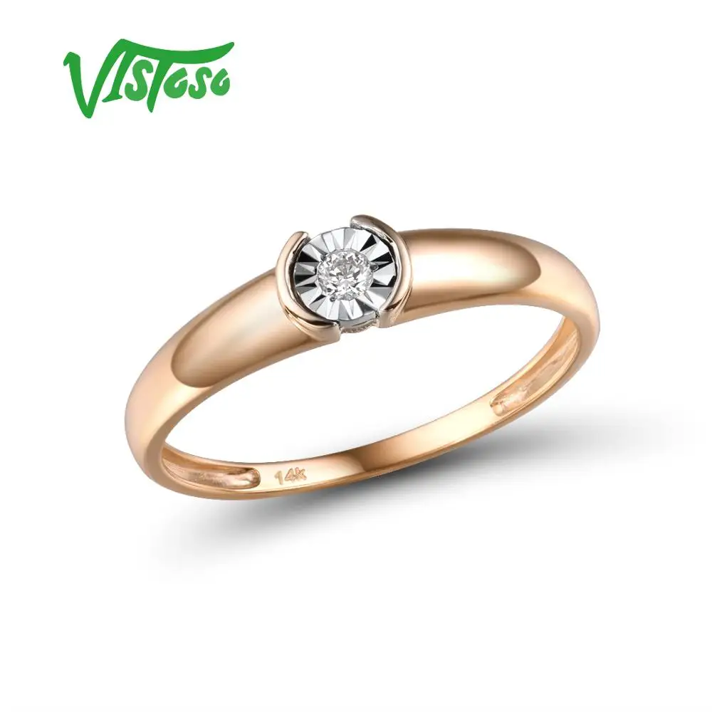 Женское кольцо с бриллиантами VISTOSO, из чистого золота 14 к 585 пробы, двухцветное, со сверкающей иллюзией, чудо-пластина, модные ювелирные украшения из драгоценных камней
