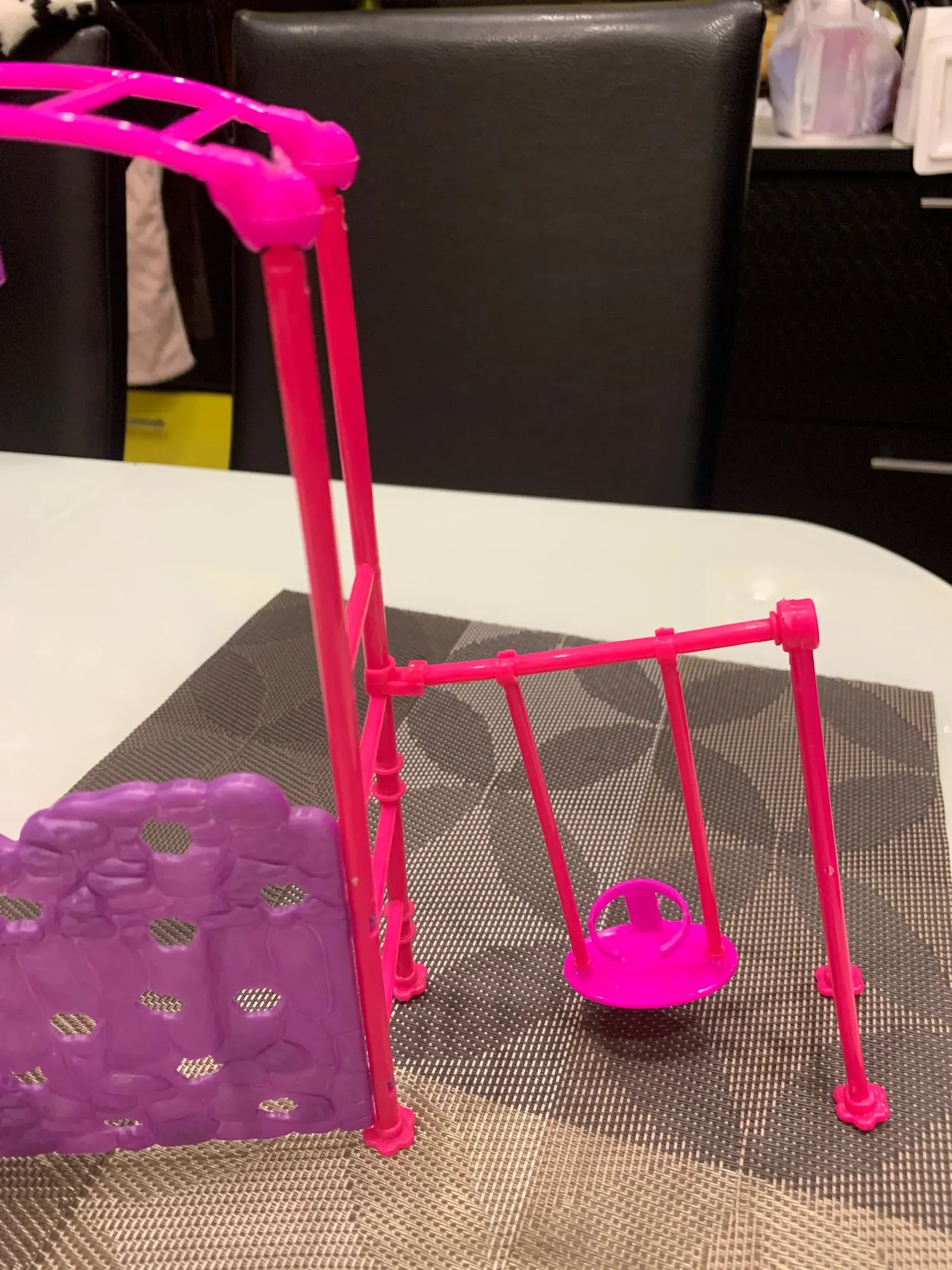 Хлипкая конструкция конечно , денег своих не стоит . Так для декорации пойдёт . Качель вообще плохо держится . На втором фото видно . Если выше закрепить над ступенькой , то криво стоит, если ниже , то падает и косится тоже , клеем может приклею