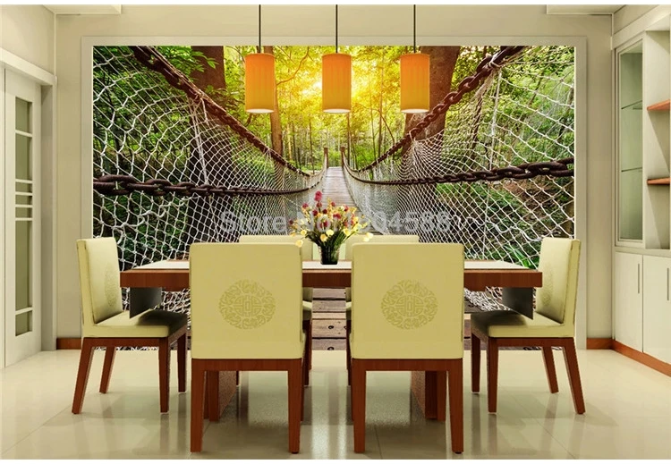 Фотообои 3D стерео подвесной мост, лесной пейзаж, фрески для гостиной, столовой, домашний декор, креативная 3D картина на стену