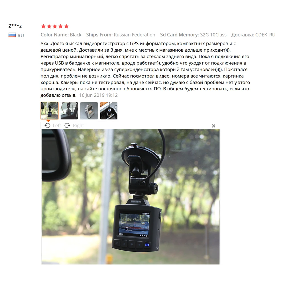 Регистратор получил, все проверил, все работает. MARUBOX как всегда на высоте, качество супер. Рекомендую MARUBOX однозначно к покупке, просто поверьте, что лучшего качества вы не найдёте нигде.