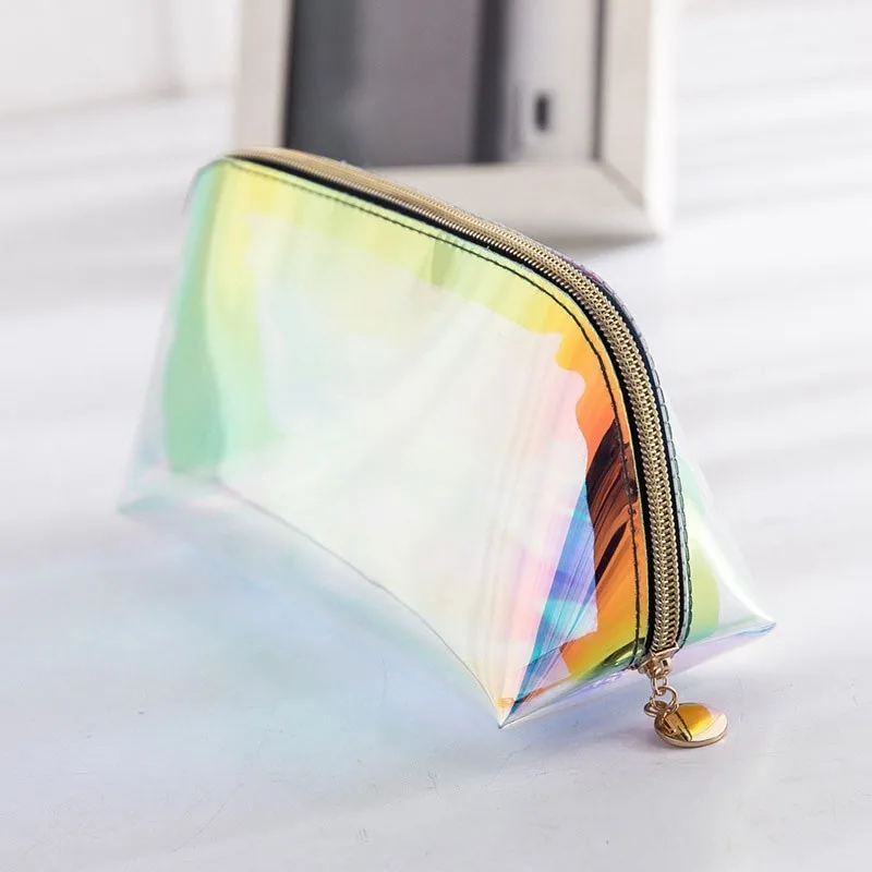 Модная маленькая сумка для унитаза для женщин, прозрачная мини-косметичка, дорожная сумка для макияжа из ПВХ, органайзер на молнии, голографическая косметичка