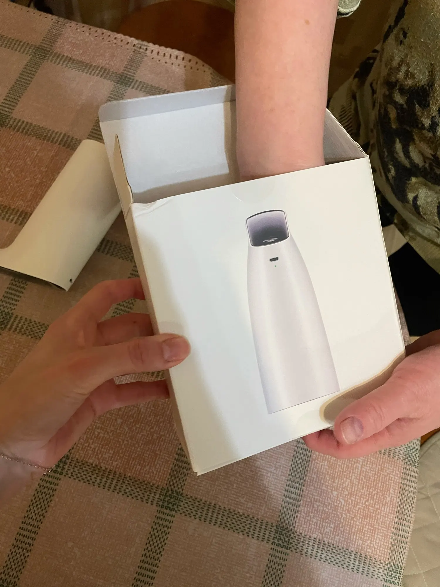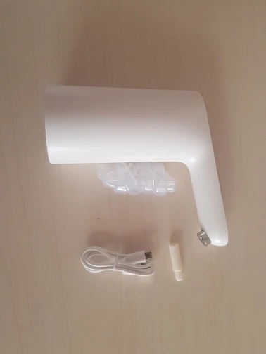 Заказ доставили ООООЧЕНЬ быстро, курьер из СДЭК привез до квартиры. Ни на упаковке, ни на самом изделии не написано, что произведено XIAOMI. При нажатии на сенсор начинается налив с негромким тарахтением, при нажатии вновь налив останавливается. Безостановочно наливает литр. К бутылке не крепится никак, просто насаживается. Гнездо для зарядки сзади, там же чуть ниже световой индикатор.