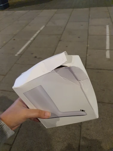 Коробочка слегка помялась, но с помпой всё хорошо. Плотно садится на крышку. Без крышки болтается.