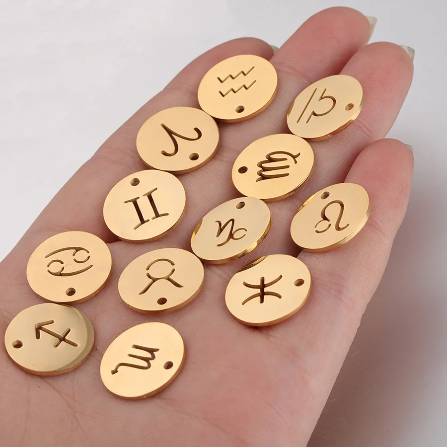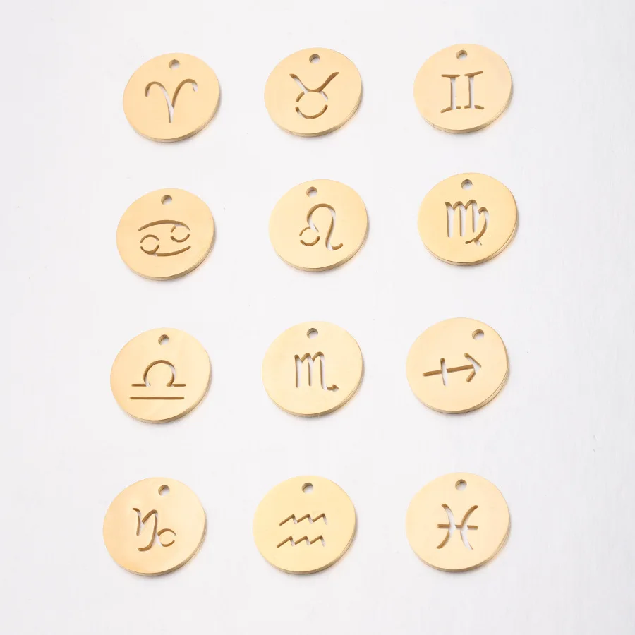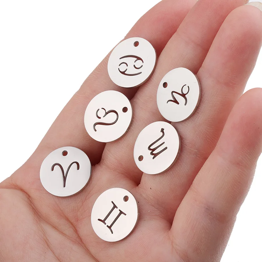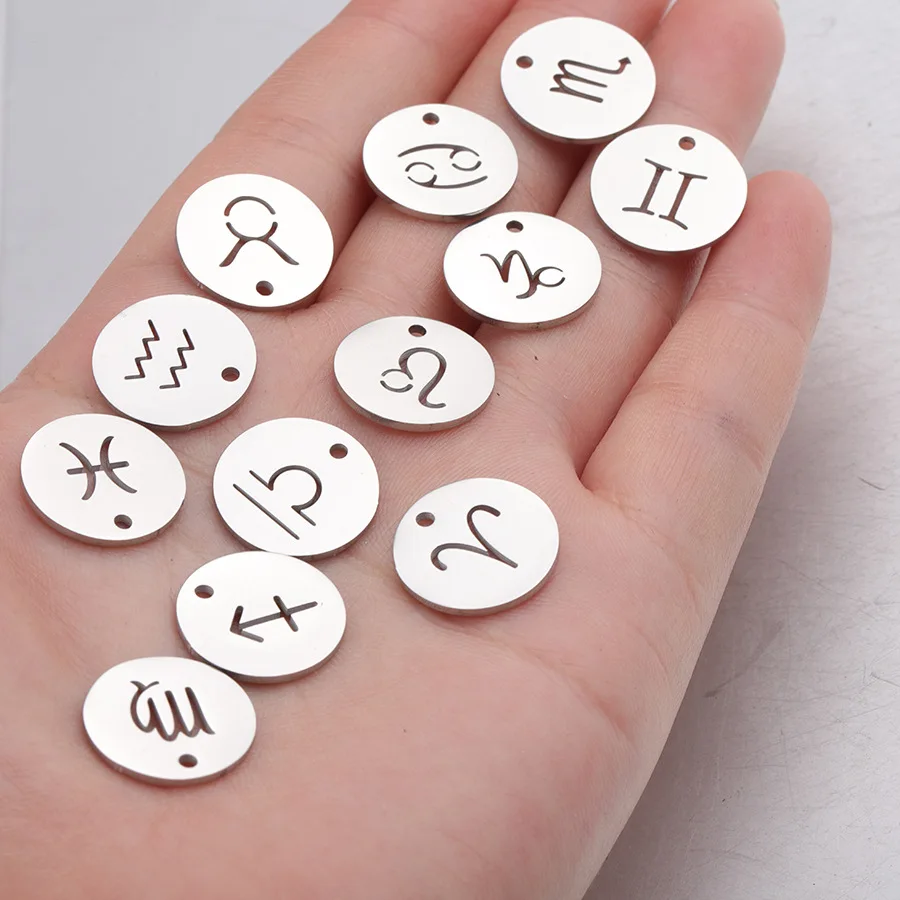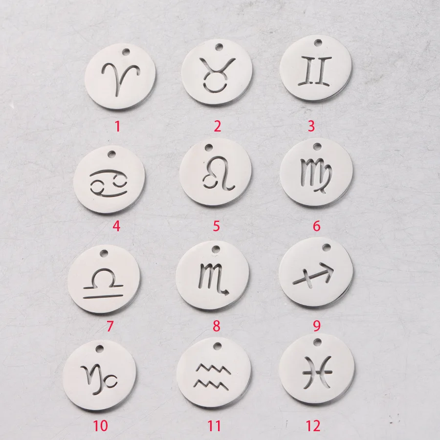 Подвески из нержавеющей стали Fnixtar, 15 мм, зеркальные, полированные, 12 созвездий, 12 шт.лот