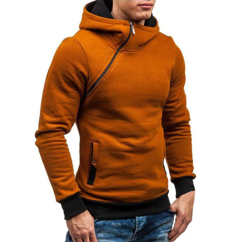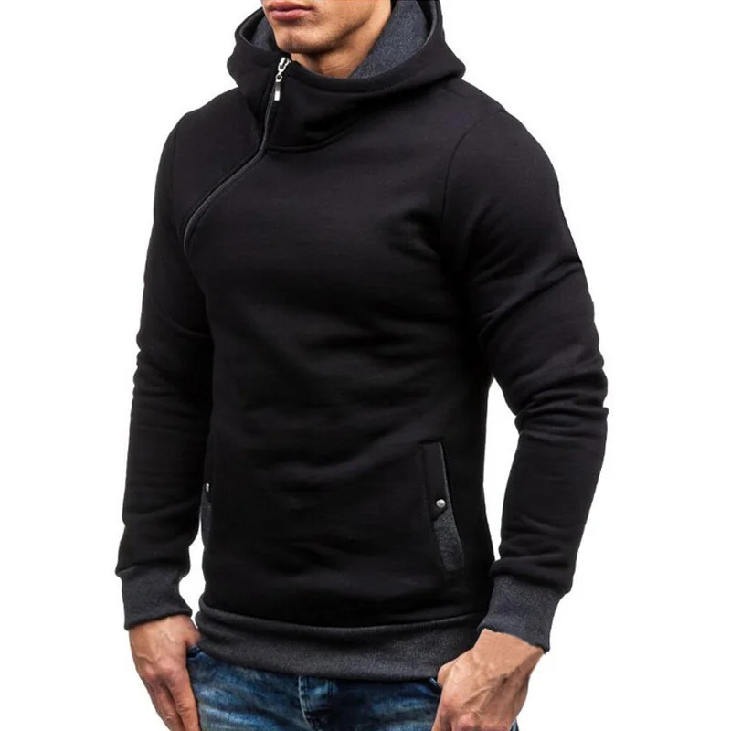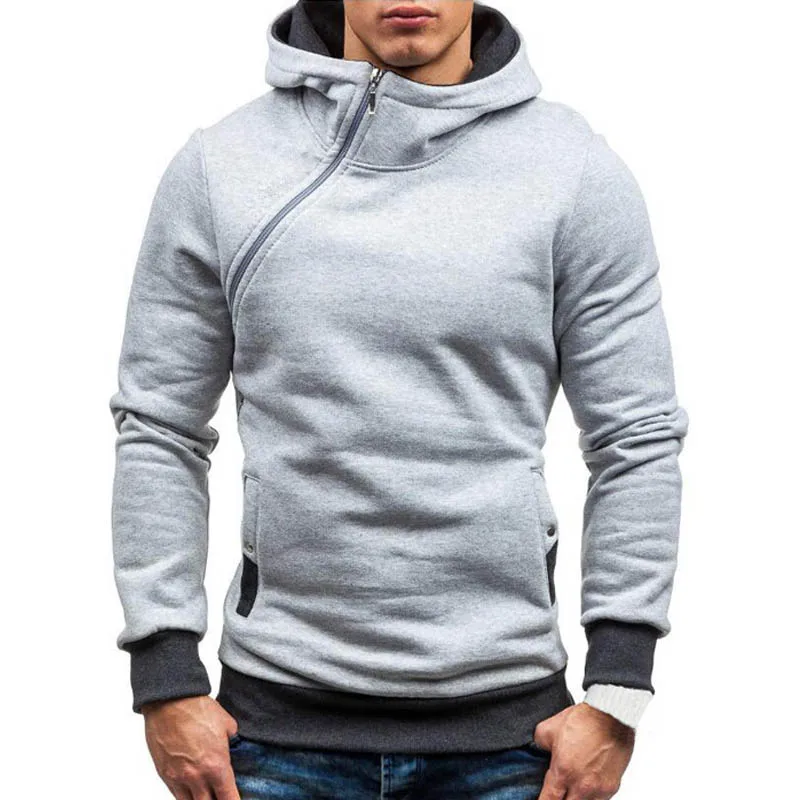 Новые повседневные однотонные мужские толстовки с длинным рукавом и Диагональной молнией