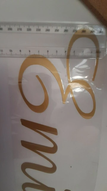 Надпись хорошо сделана. Большой и разборчивый. Идеально. Очень приятный золотой оттенок. Я заказал его без каких-либо польских символов, потому что я сам сделаю линию для номера в верхней части (L001). Я очень доволен, я рекомендую его.